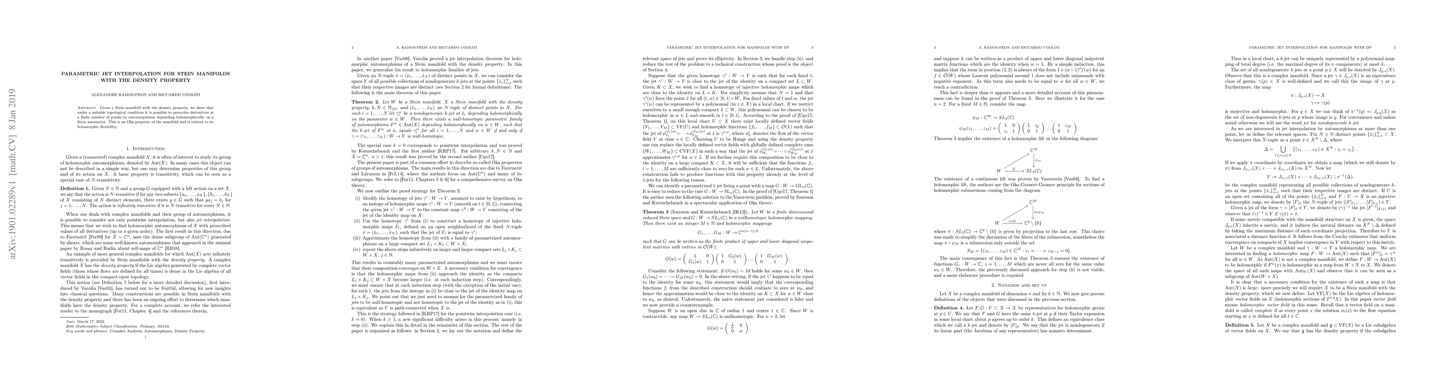 Summary: This paper demonstrates that a Stein manifold with the density property can have its automorphisms holomorphically parameterized, allowing prescribed derivatives at specific points, showcasing an Oka property tied to the manifold's holomorphic flexibility.
