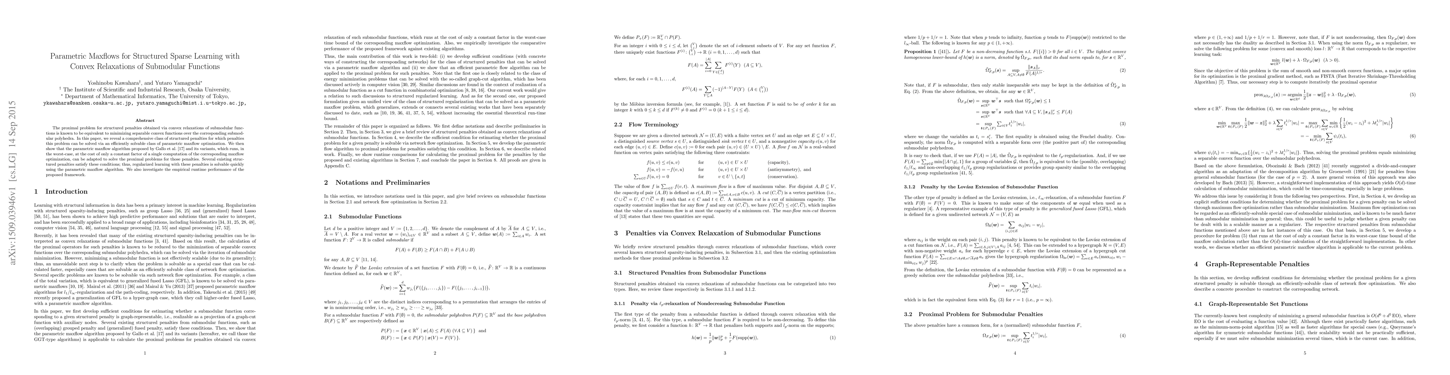 This paper introduces a class of structured penalties for which proximal problems can be solved efficiently using parametric maxflow optimization. The proposed method adapts the parametric maxflow algorithm to solve these problems, demonstrating its effectiveness for several existing structured penalties and evaluating its empirical runtime performance.