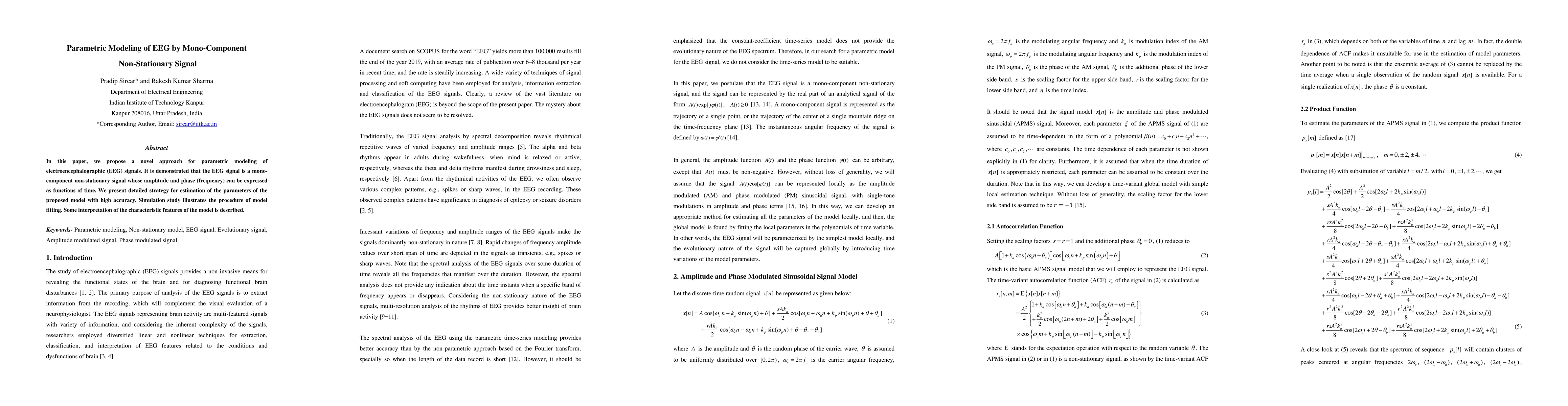 Researchers propose a new approach to model EEG signals as non-stationary signals with changing amplitude and frequency over time. Their method provides a detailed strategy for estimating parameters with high accuracy.