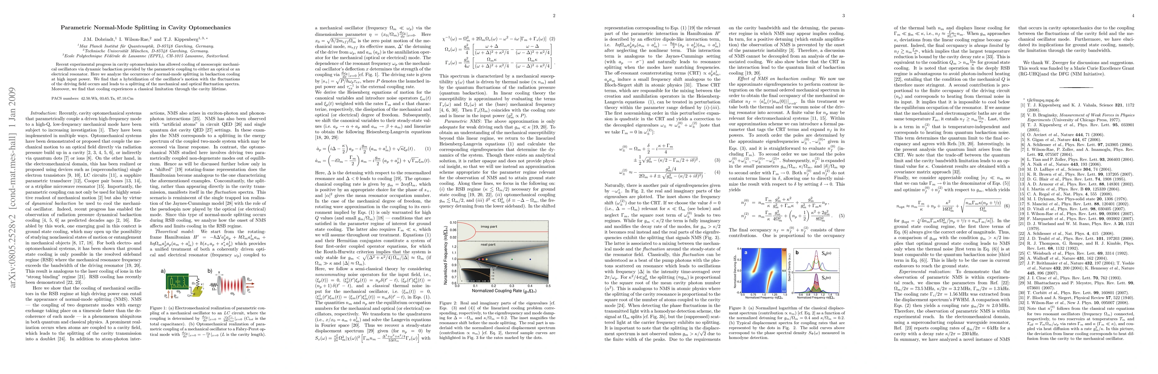 This paper investigates normal-mode splitting in cavity optomechanics, revealing that high input power induces a hybridization between the mechanical oscillator and the driving field, resulting in distinct spectral splitting. It also highlights a classical limitation on cooling efficiency due to the cavity's finite lifetime.