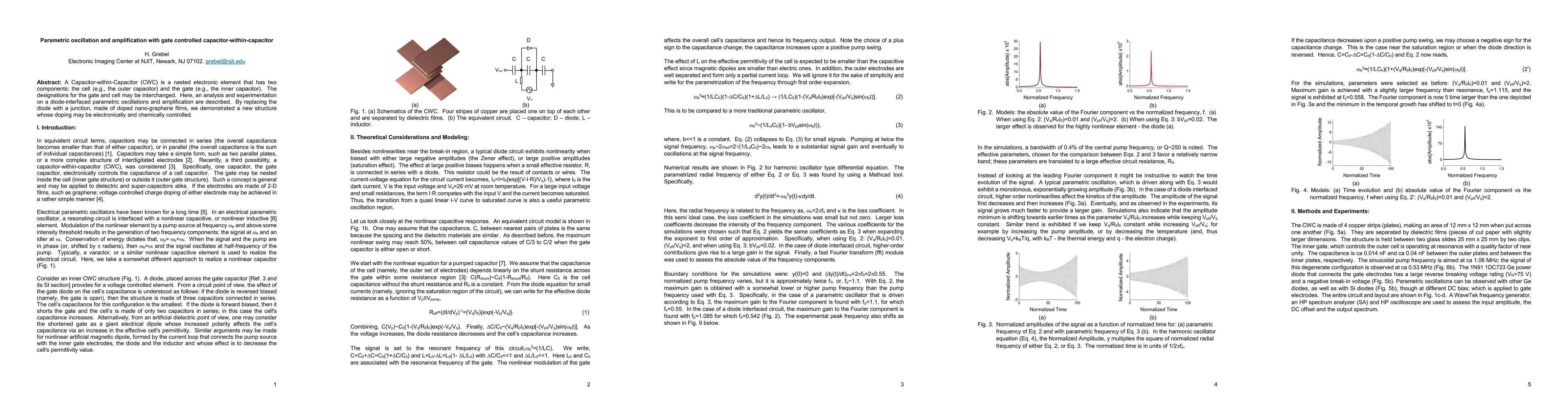 A Capacitor-within-Capacitor (CWC) is a nested electronic element that has two components: the cell (e.g., the outer capacitor) and the gate (e.g., the inner capacitor). The designations for the gate and cell may be interchanged. Here, an analysis and experimentation on a diode-interfaced parametric oscillations and amplification are described. By replacing the diode with a junction, made of doped nano-graphene films, we demonstrated a new structure whose doping may be electronically and chemically controlled.