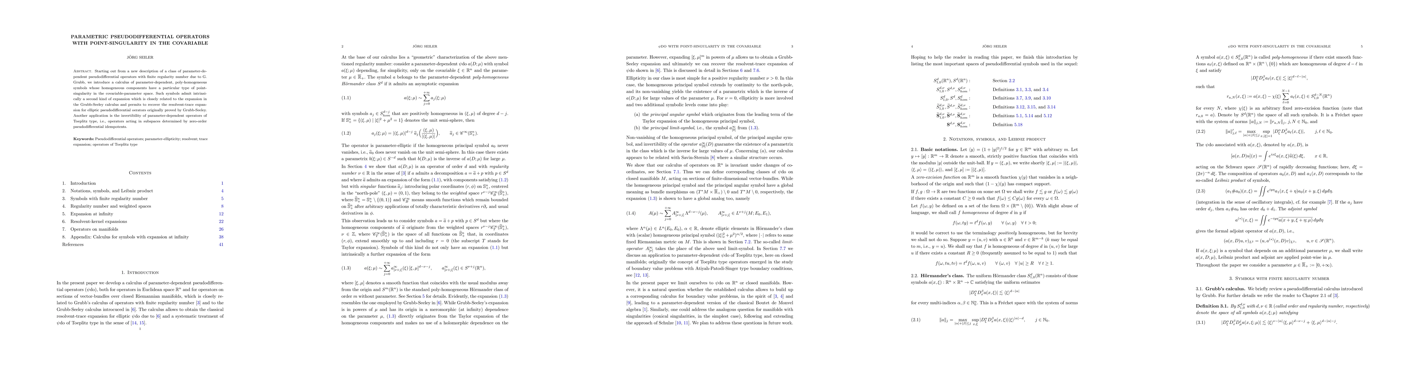 Researchers introduce a new calculus for parameter-dependent pseudodifferential operators with point-singularity in the covariable-parameter space, enabling resolvent-trace expansion and applications to invertible Toeplitz-type operators.