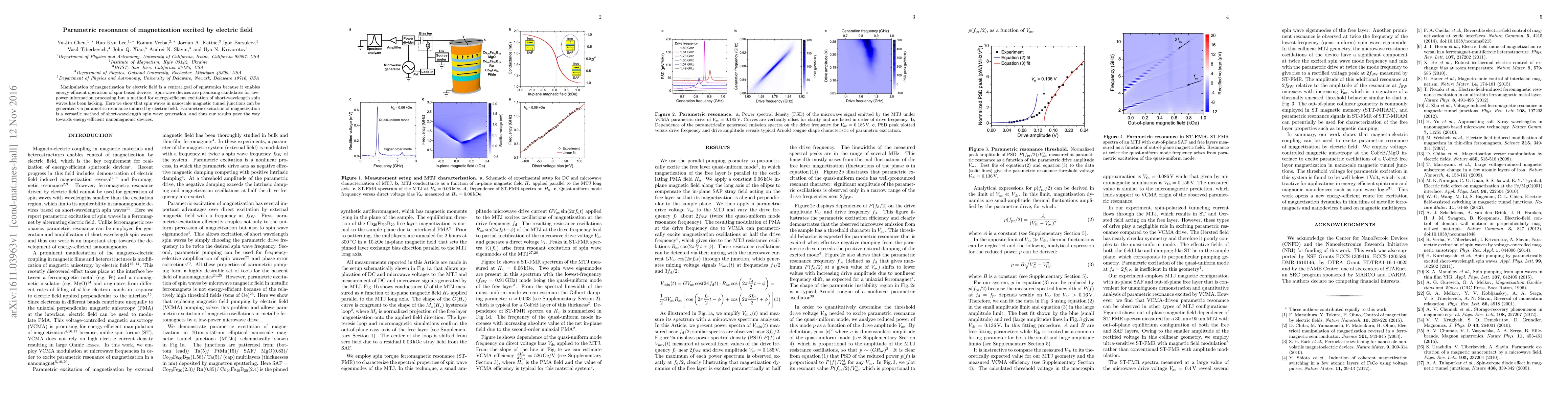 This research demonstrates that short-wavelength spin waves in nanoscale magnetic tunnel junctions can be generated via parametric resonance induced by electric fields, offering a potential method for energy-efficient excitation in spintronic devices.