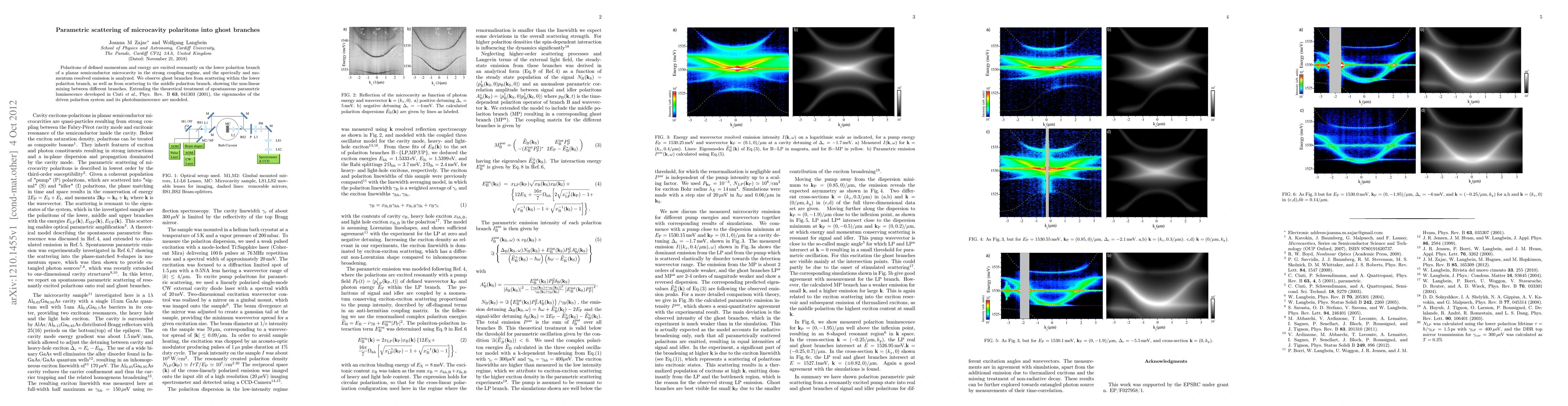 This paper investigates the parametric scattering of microcavity polaritons, revealing ghost branches from scattering within and between the lower and middle polariton branches. The study extends theoretical models to describe the eigenmodes and photoluminescence of the driven polariton system.