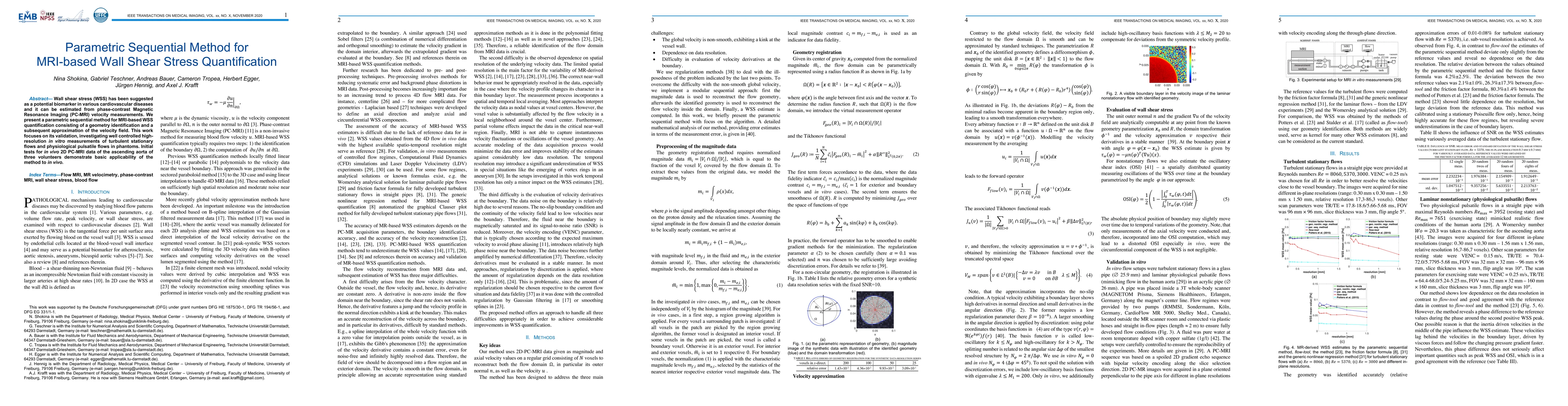 This paper introduces a parametric sequential method for quantifying wall shear stress (WSS) from phase-contrast MRI, validated through controlled in vitro turbulent and pulsatile flow measurements, and demonstrated in vivo using 2D PC-MRI data from the ascending aorta of three volunteers.