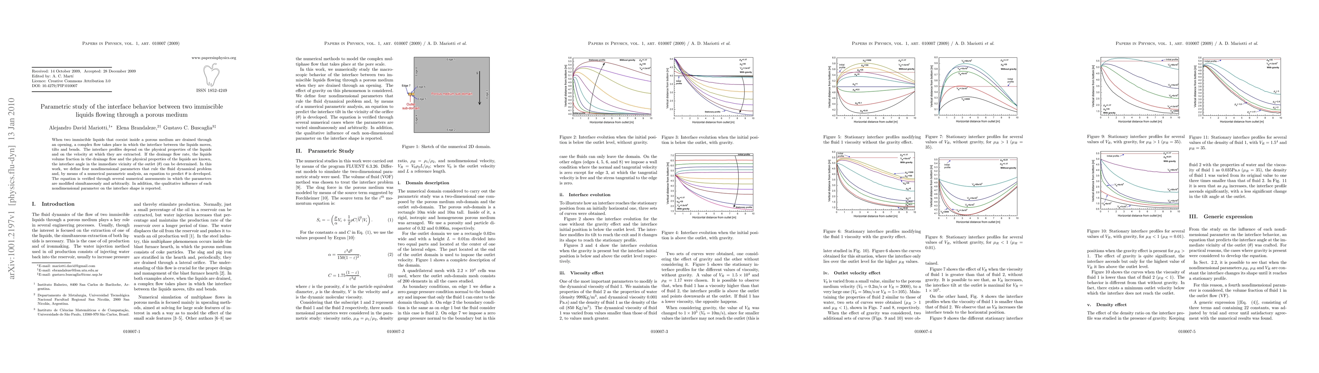 When two immiscible liquids that coexist inside a porous medium are drained through an opening, a complex flow takes place in which the interface between the liquids moves, tilts and bends. The interface profiles depend on the physical properties of the liquids and on the velocity at which they are extracted. If the drainage flow rate, the liquids volume fraction in the drainage flow and the physical properties of the liquids are known, the interface angle in the immediate vicinity of the outlet (theta) can be determined. In this work, we define four nondimensional parameters that rule the fluid dynamical problem and, by means of a numerical parametric analysis, an equation to predict theta is developed. The equation is verified through several numerical assessments in which the parameters are modified simultaneously and arbitrarily. In addition, the qualitative influence of each nondimensional parameter on the interface shape is reported.