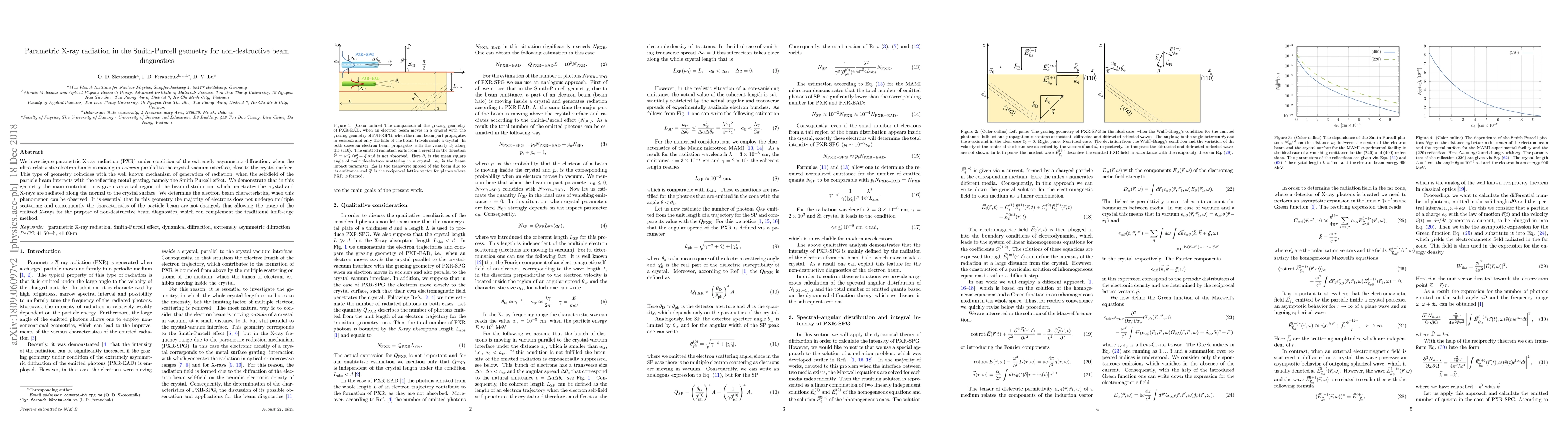 This paper explores parametric X-ray radiation (PXR) in the Smith-Purcell geometry, where ultra-relativistic electron beams interact with a metal grating near a crystal surface. The study reveals that X-rays are primarily generated from the tail of the beam penetrating the crystal, enabling non-destructive diagnostics without altering beam characteristics.