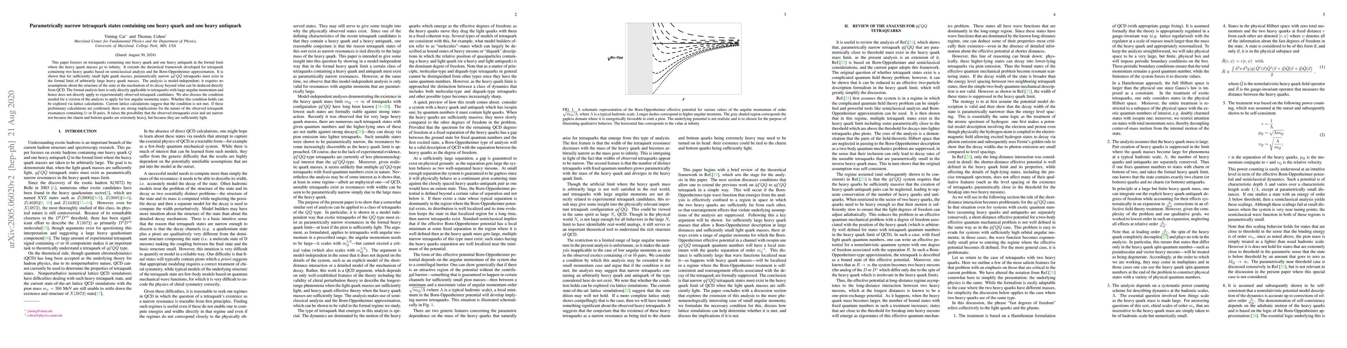 This paper focuses on tetraquarks containing one heavy quark and one heavy antiquark in the formal limit where the heavy quark masses go to infinity. It extends the theoretical framework developed for tetraquark containing two heavy quarks based on semi-classical analysis and the Born-Oppenheimer approximation. It is shown that for sufficiently small light quark masses, parametrically narrow $q\bar{q}'Q\bar{Q}$ tetraquarks must exist in the formal limit of arbitrarily large heavy quark masses. The analysis is model-independent; it requires no assumptions about the structure of the state or the mechanism of its decay beyond what can be deduced directly from QCD. The formal analysis here is only directly applicable to tetraquarks with large angular momentum and hence does not directly apply to experimentally observed tetraquark candidates. We also discuss the condition needed for a version of the analysis to apply for low angular momenta states. Whether this condition holds can be explored via lattice calculations. Current lattice calculations suggest that the condition is not met. If these preliminary calculations are confirmed, there are strong implications for the nature of the observed tetraquark resonances containing $\bar{c}c$ or $\bar{b}b$ pairs. It raises the possibility that the observed tetraquarks exist and are narrow not because the charm and bottom quarks are extremely heavy, but because they are sufficiently light.