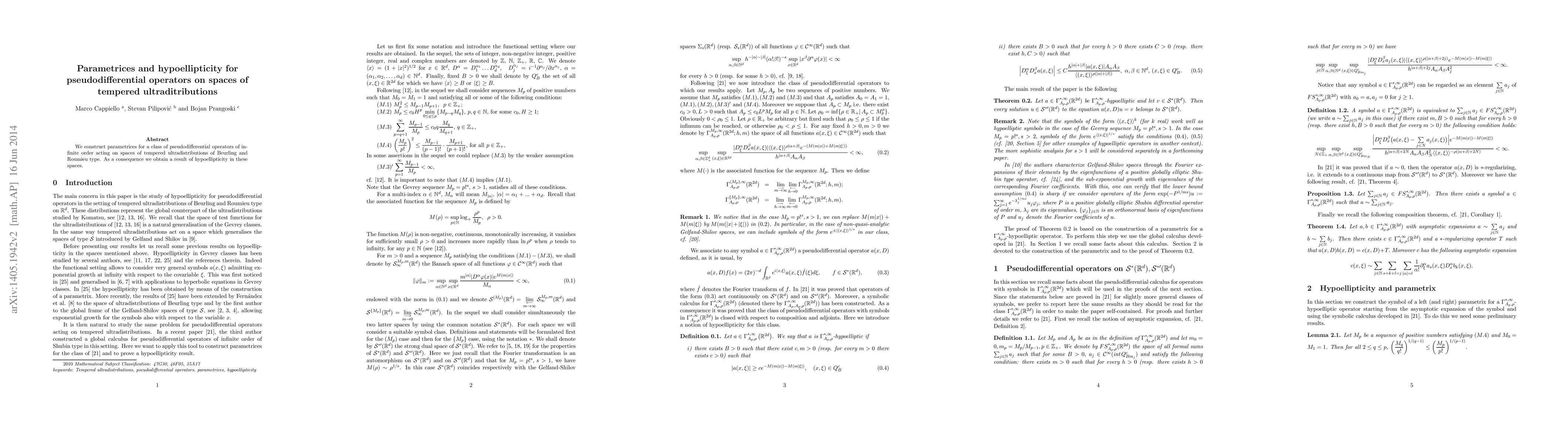 Summary: This paper constructs parametrices for pseudodifferential operators of infinite order on tempered ultradistribution spaces, leading to a hypoellipticity result for these operators.
