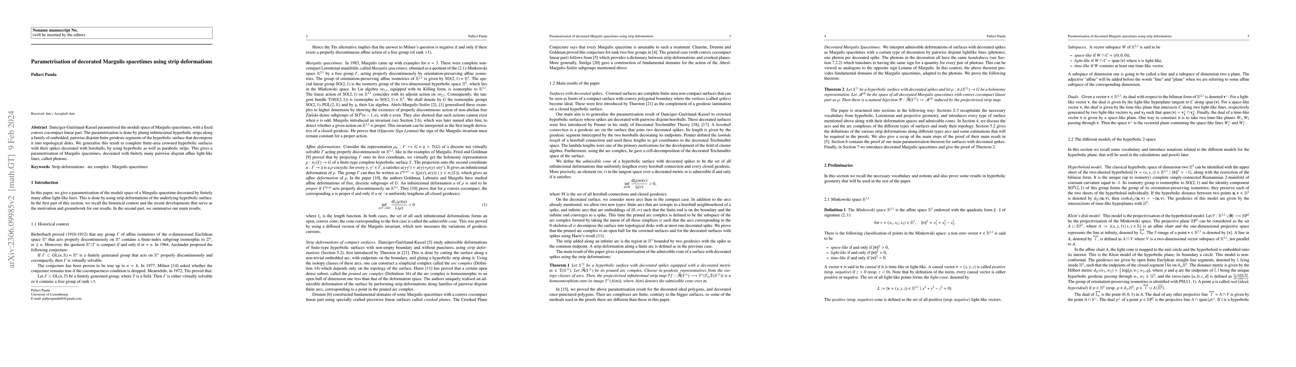 Margulis spacetimes are complete affine 3-manifolds that were introduced to show that the cocompactness condition of Auslander's conjecture is necessary. There are Lorentzian manifolds that are obtained as a quotient of the three dimensional Minkowski space by a non-abelian free group acting properly discontinuously by affine isometries. Goldman-Labourie-Margulis showed that such a group is determined by a complete hyperbolic metric on a possibly non-orientable finite-type hyperbolic surface together with an infinitesimal deformation of this metric that uniformly lengthens all non-trivial closed curves on the surface. Furthermore, the set of all such infinitesimal deformations forms an open convex cone. Danciger Gu\'eritaud-Kassel parametrised the moduli space of Margulis spacetimes, with a fixed convex cocompact linear part, using the pruned arc complex. The parametrisation is done by gluing infinitesimal hyperbolic strips along a family of embedded, pairwise disjoint arcs of the hyperbolic surface that decompose it into topological disks. We generalise this result to complete finite-area hyperbolic surfaces with spikes decorated with horoballs. These are closely related to Margulis spacetimes decorated with finitely many pairwise disjoint affine light-like lines, called photons.