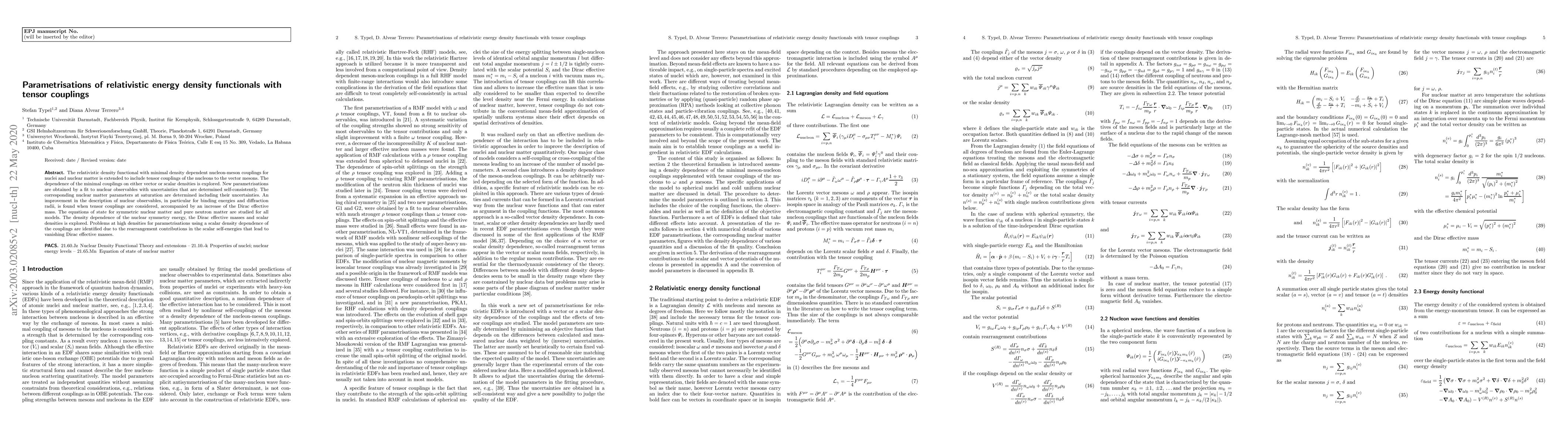This paper extends relativistic density functional theory to include tensor couplings of nucleons to vector mesons, improving the description of nuclear observables and the equation of state for nuclear matter. Issues arise at high densities for models dependent on scalar densities due to vanishing Dirac effective masses.