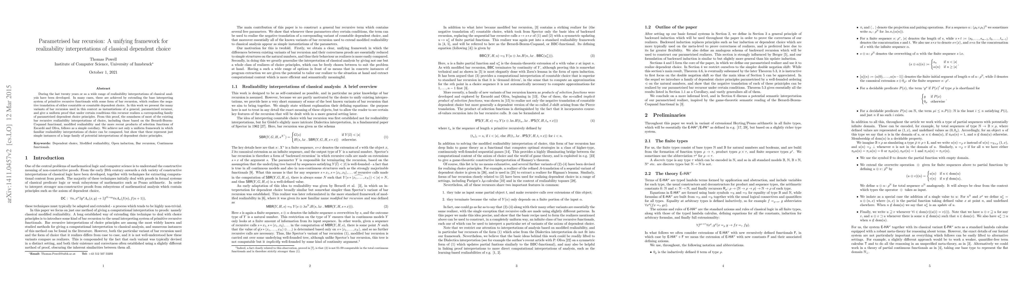 This paper presents a unified framework for various realizability interpretations of classical dependent choice through parametrised bar recursion. It demonstrates that many existing bar recursive interpretations are instances of a general parametrised recursor, providing a uniform proof of their soundness.