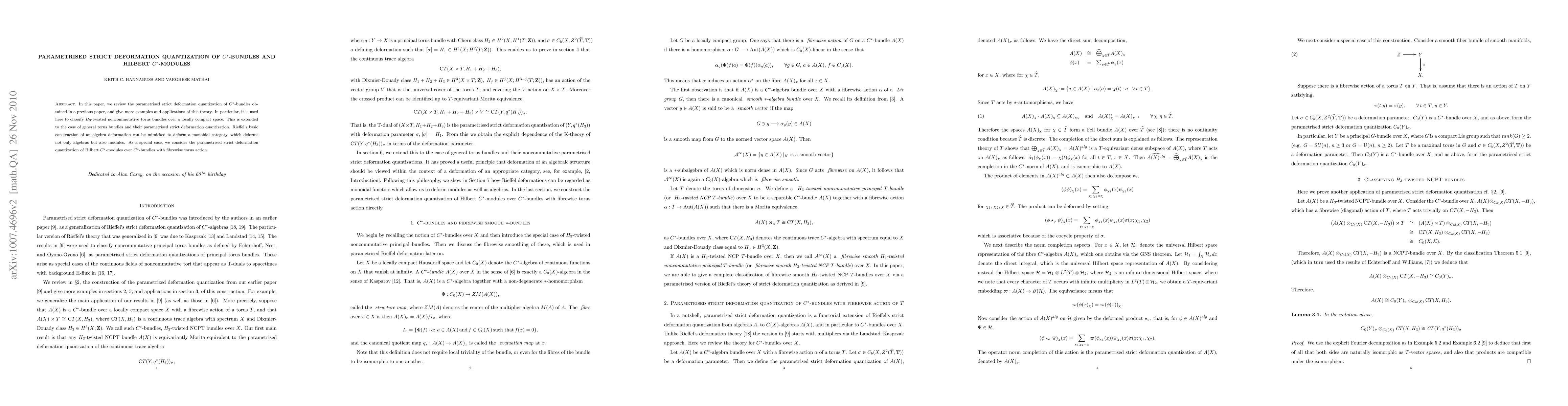 This paper extends the theory of parametrised strict deformation quantization to C*-bundles and Hilbert C*-modules, providing examples and applications such as classifying H_3-twisted noncommutative torus bundles and their deformations. It also discusses the deformation of monoidal categories and modules, including the specific case of Hilbert C*-modules with fibrewise torus action.