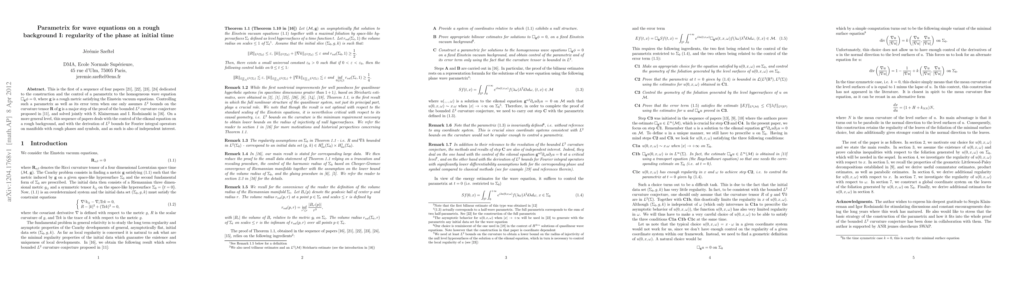This paper establishes a parametrix for the homogeneous wave equation on a rough metric, controlling its phase at initial time and providing $L^2$ bounds on the curvature tensor, with implications for the bounded $L^2$ curvature conjecture and control of the eikonal equation on rough backgrounds.