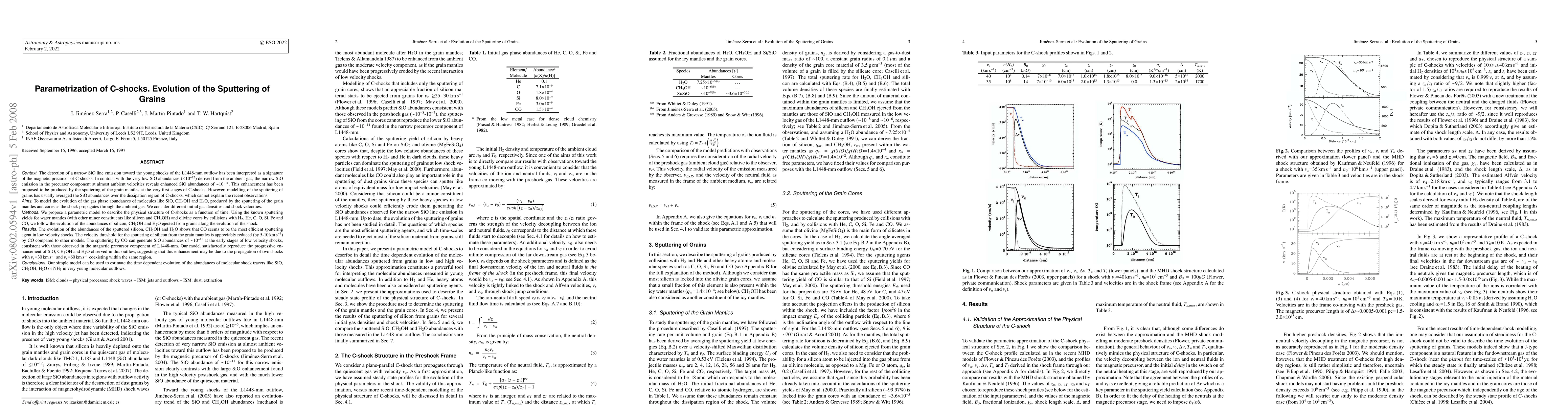 This paper proposes a parametric model to describe the evolution of C-shocks and the sputtering of grain mantles, showing that CO is the most efficient agent for generating enhanced SiO abundances at early stages, consistent with observations in the L1448-mm outflow. The model also explains the coexistence of multiple shocks producing progressive enhancements of SiO, CH3OH, and H2O.