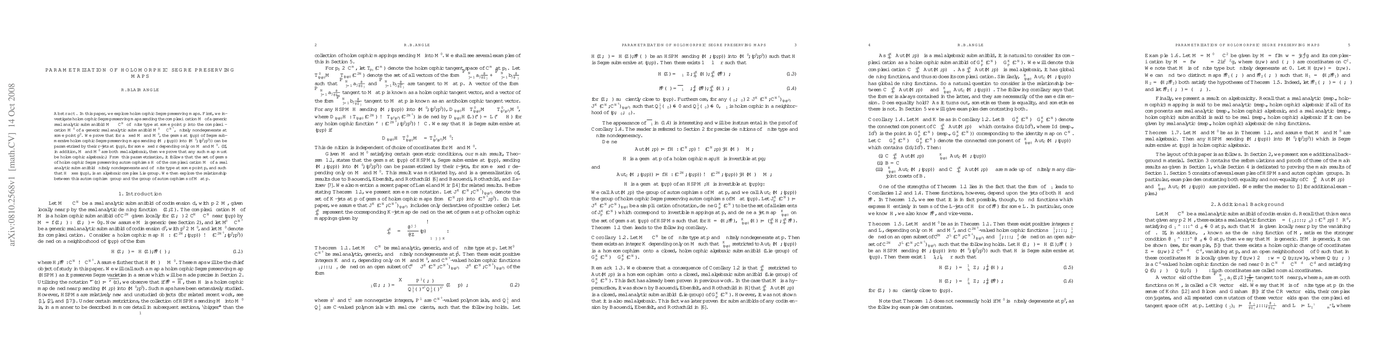 In this paper, we explore holomorphic Segre preserving maps. First, we investigate holomorphic Segre preserving maps sending the complexification $\mathcal{M}$ of a generic real analytic submanifold $M \subseteq \C^N$ of finite type at some point $p$ into the complexification $\mathcal{M}'$ of a generic real analytic submanifold $M' \subseteq \C^{N'}$, finitely nondegenerate at some point $p'$. We prove that for a fixed $M$ and $M'$, the germs at $(p,\bar{p})$ of Segre submersive holomorphic Segre preserving maps sending $(\M,(p,\bar{p}))$ into $(\M',(p', \bar{p}'))$ can be parametrized by their $r$-jets at $(p,\bar{p})$, for some fixed $r$ depending only on $M$ and $M'$. (If, in addition, $M$ and $M'$ are both real algebraic, then we prove that any such map must be holomorphic algebraic.) From this parametrization, it follows that the set of germs of holomorphic Segre preserving automorphisms $\mathcal{H}$ of the complexification $\mathcal{M}$ of a real analytic submanifold finitely nondegenerate and of finite type at some point $p$, and such that $\mathcal{H}$ fixes $(p,\bar{p})$, is an algebraic complex Lie group. We then explore the relationship between this automorphism group and the group of automorphisms of $M$ at $p$.
