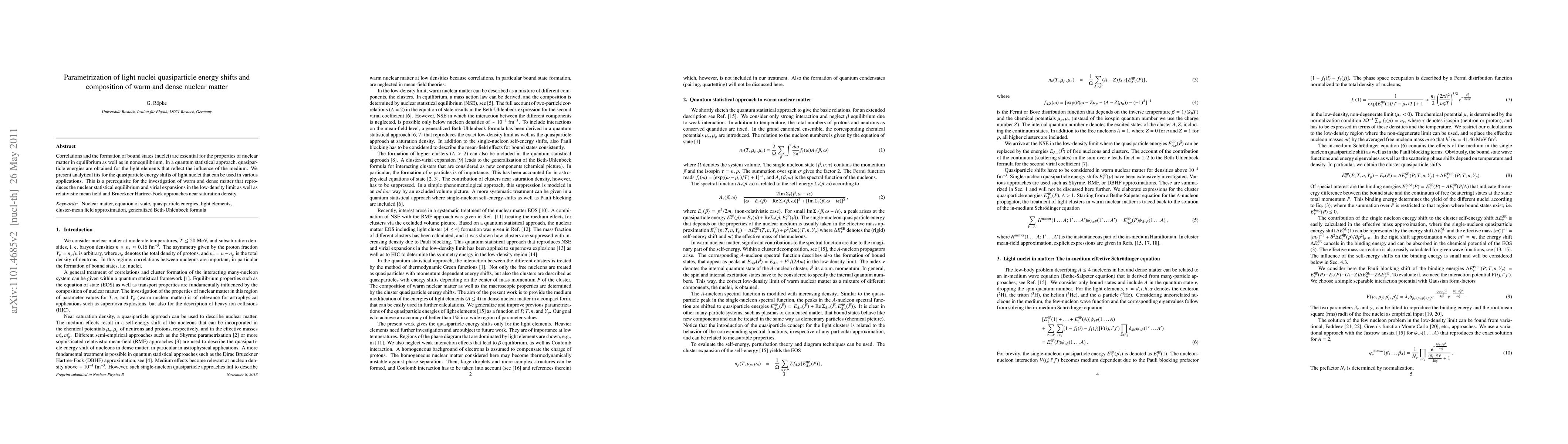 Correlations and the formation of bound states (nuclei) are essential for the properties of nuclear matter in equilibrium as well as in nonequilibrium. In a quantum statistical approach, quasiparticle energies are obtained for the light elements that reflect the influence of the medium. We present analytical fits for the quasiparticle energy shifts of light nuclei that can be used in various applications. This is a prerequisite for the investigation of warm and dense matter that reproduces the nuclear statistical equilibrium and virial expansions in the low-density limit as well as relativistic mean field and Brueckner Hartree-Fock approaches near saturation density.