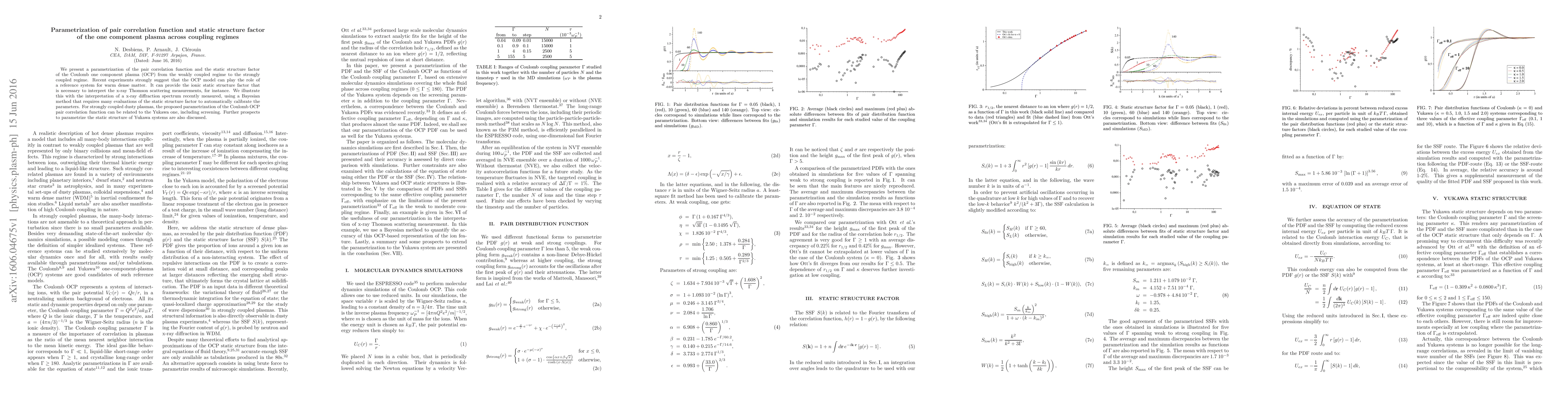 This paper presents a parametrization of the pair correlation function and static structure factor for the one component plasma (OCP) across coupling regimes, useful for interpreting x-ray Thomson scattering measurements. The Bayesian method used for calibration highlights the OCP's relevance for warm dense matter and extends to Yukawa systems for strongly coupled dusty plasmas.