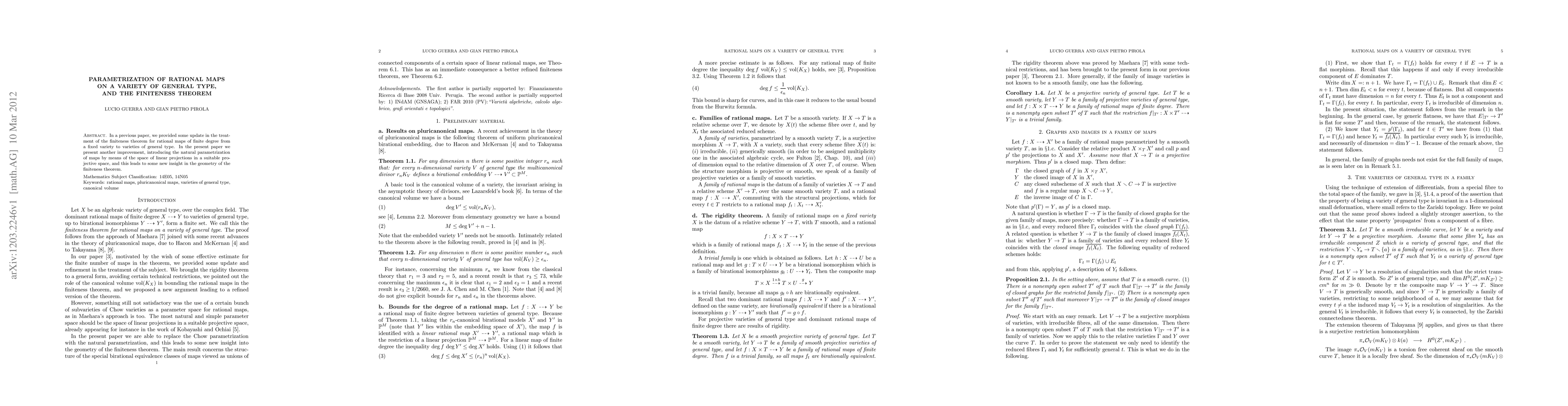 This paper improves the treatment of rational maps from a fixed variety to general type varieties, introducing a new parametrization method that leads to insights into the finiteness theorem's geometry.