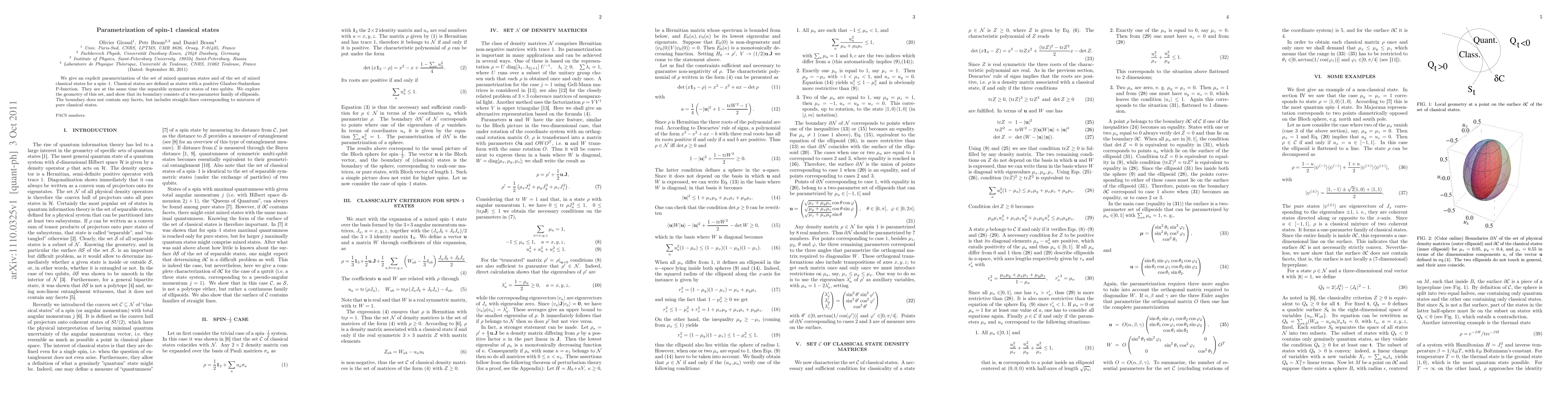 This research paper provides a parametrization of classical states for a spin-1 system, showing that their boundary consists of two-parameter ellipsoids with straight-lines representing mixtures of pure states.