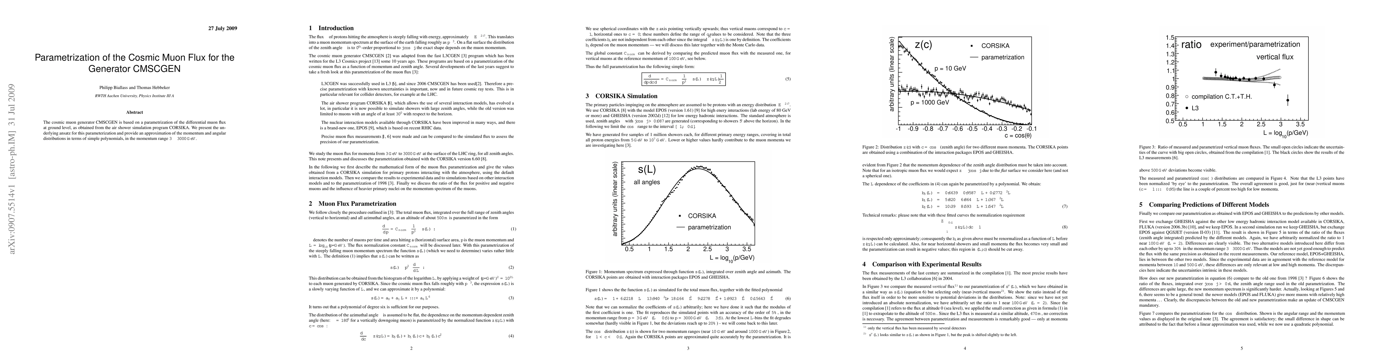 The paper presents a parametrization of the cosmic muon flux for the CMSCGEN generator, derived from CORSIKA simulations, and provides polynomial approximations for momentum and angular distributions in the range of 3 to 3000 GeV. This parameterization aims to accurately model ground-level muon fluxes.