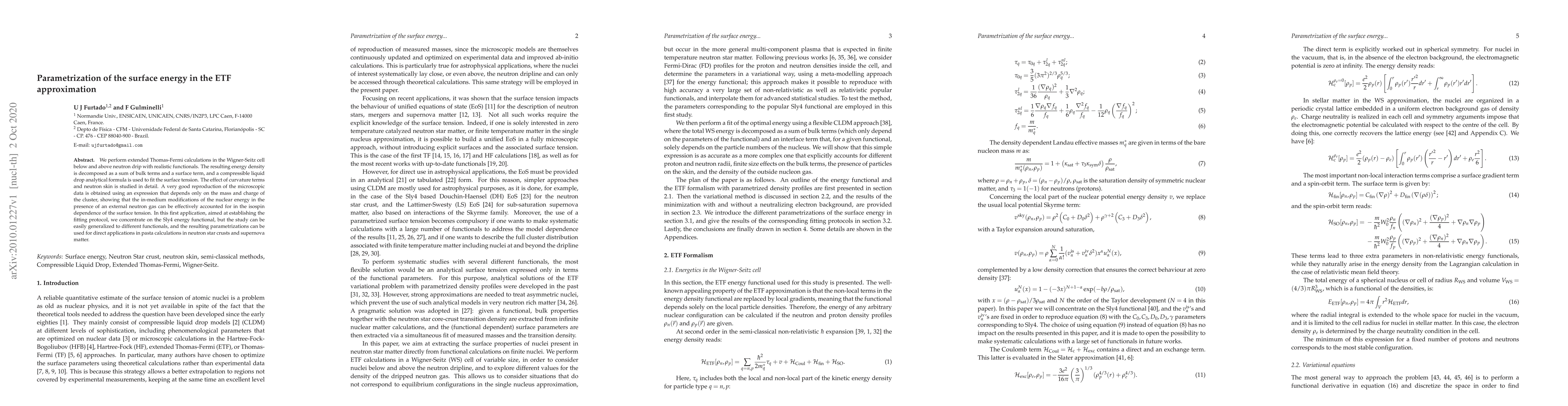 We perform extended Thomas-Fermi calculations in the Wigner-Seitz cell below and above neutron drip with realistic functionals. The resulting energy density is decomposed as a sum of bulk terms and a surface term, and a compressible liquid drop analytical formula is used to fit the surface tension. The effect of curvature terms and neutron skin is studied in detail. A very good reproduction of the microscopic data is obtained using an expression that depends only on the mass and charge of the cluster, showing that the in-medium modifications of the nuclear energy in the presence of an external neutron gas can be effectively accounted for in the isospin dependence of the surface tension. In this first application, aimed at establishing the fitting protocol, we concentrate on the Sly4 energy functional, but the study can be easily generalized to different functionals, and the resulting parametrizations can be used for direct applications in pasta calculations in neutron star crusts and supernova matter.