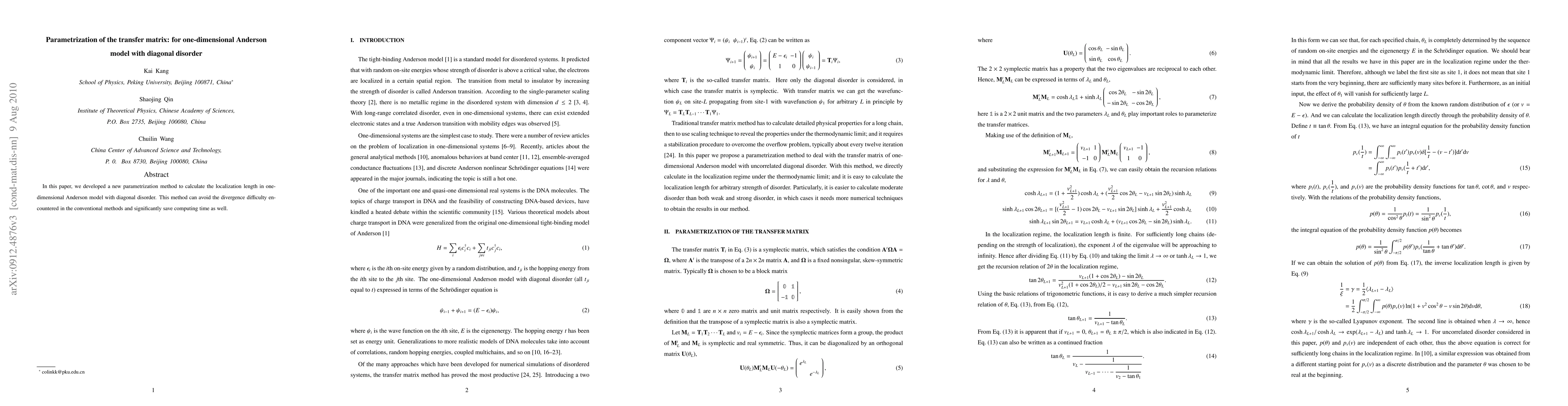 Summary: This paper introduces a novel parametrization method to compute the localization length in the one-dimensional Anderson model with diagonal disorder, overcoming divergence issues and reducing computational time compared to traditional approaches.