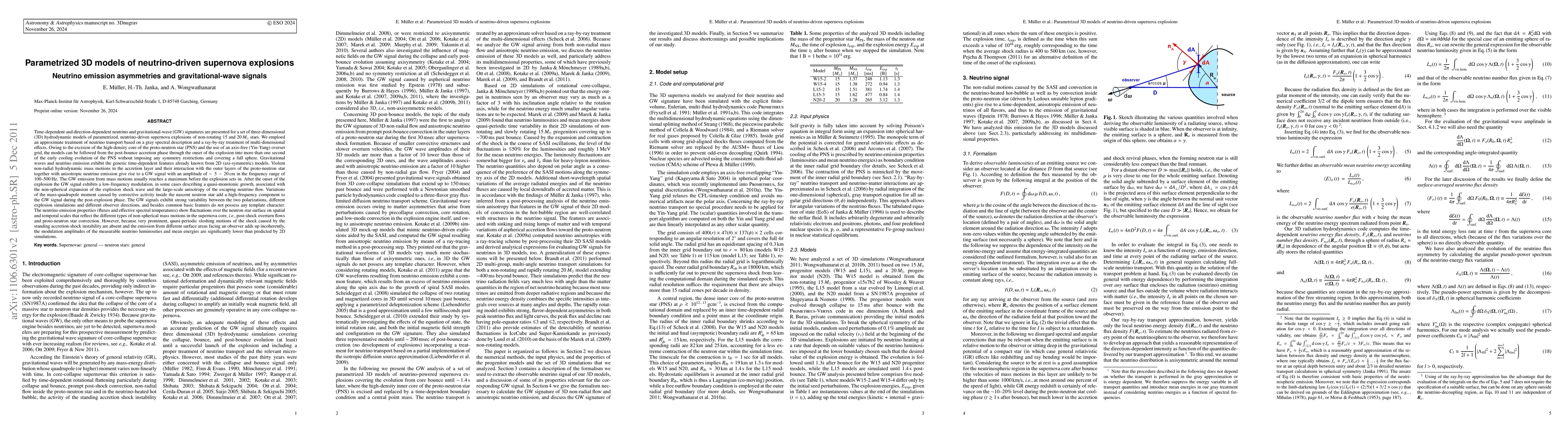 This paper presents 3D hydrodynamic models of neutrino-driven supernova explosions, showing that the non-radial mass motions and anisotropic neutrino emission generate complex gravitational-wave signals with strong variability, while the neutrino emission's modulation amplitudes are smaller than predicted by 2D simulations.