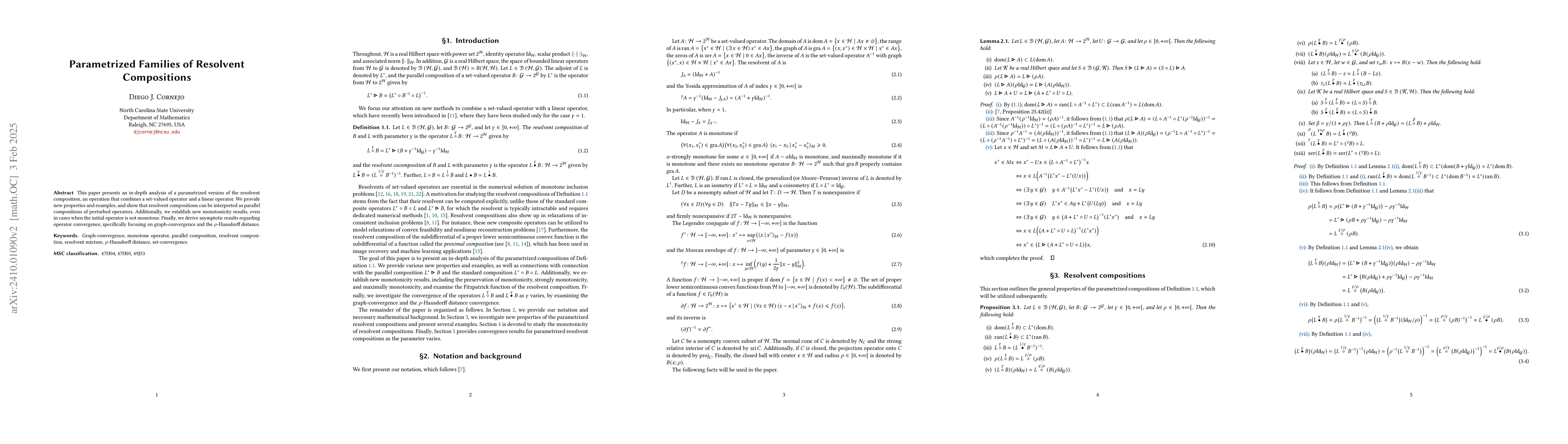 This paper investigates parametrized resolvent compositions, combining set-valued and linear operators, and presents new properties and monotonicity results, including cases where the initial operator is non-monotone. It also derives asymptotic convergence results via graph-convergence and the $\rho$-Hausdorff distance.