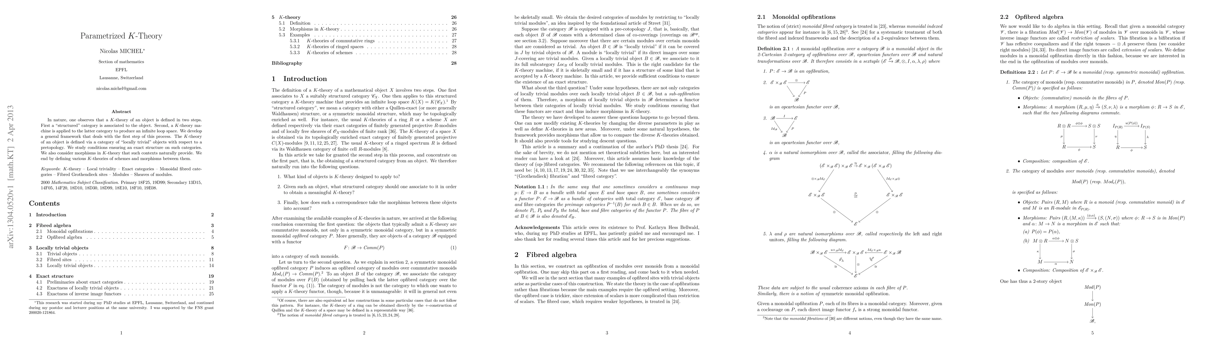 In nature, one observes that a K-theory of an object is defined in two steps. First a "structured" category is associated to the object. Second, a K-theory machine is applied to the latter category to produce an infinite loop space. We develop a general framework that deals with the first step of this process. The K-theory of an object is defined via a category of "locally trivial" objects with respect to a pretopology. We study conditions ensuring an exact structure on such categories. We also consider morphisms in K-theory that such contexts naturally provide. We end by defining various K-theories of schemes and morphisms between them.