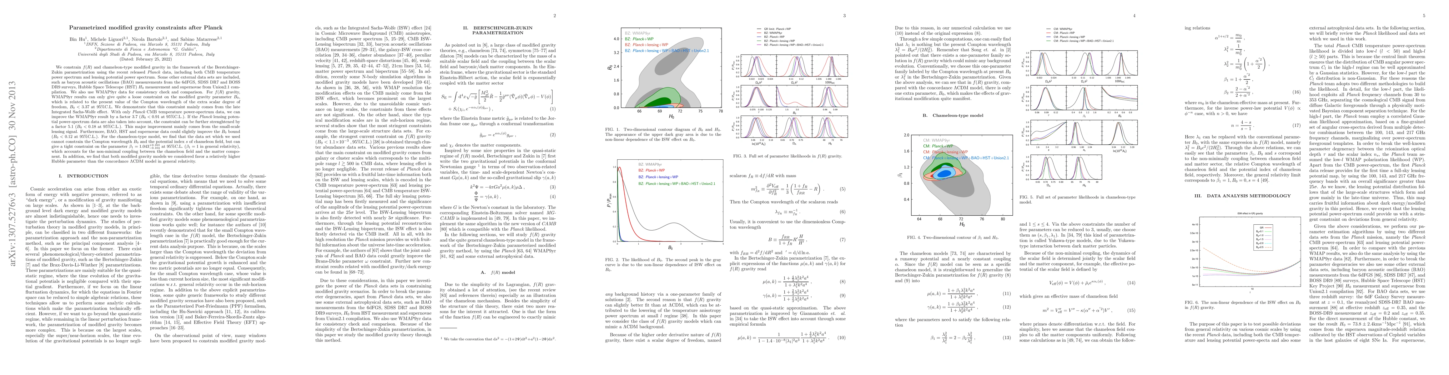 This study constrains modified gravity models using Planck data and external datasets, finding that $f(R)$ gravity has a tighter constraint on the Compton wavelength of an extra scalar degree of freedom than previously thought.