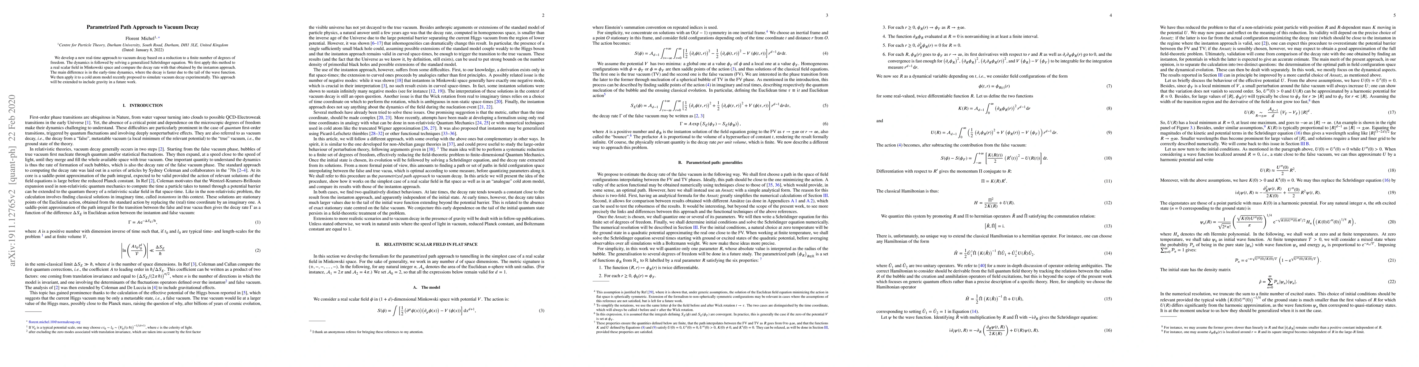 We develop a new real-time approach to vacuum decay based on a reduction to a finite number of degrees of freedom. The dynamics is followed by solving a generalized Schr\"odinger equation. We first apply this method to a real scalar field in Minkowski space and compare the decay rate with that obtained by the instanton approach. The main difference is in the early-time dynamics, where the decay is faster due to the tail of the wave function. We then apply it to a cold atom model recently proposed to simulate vacuum decay experimentally. This approach will be extended to include gravity in a future work.