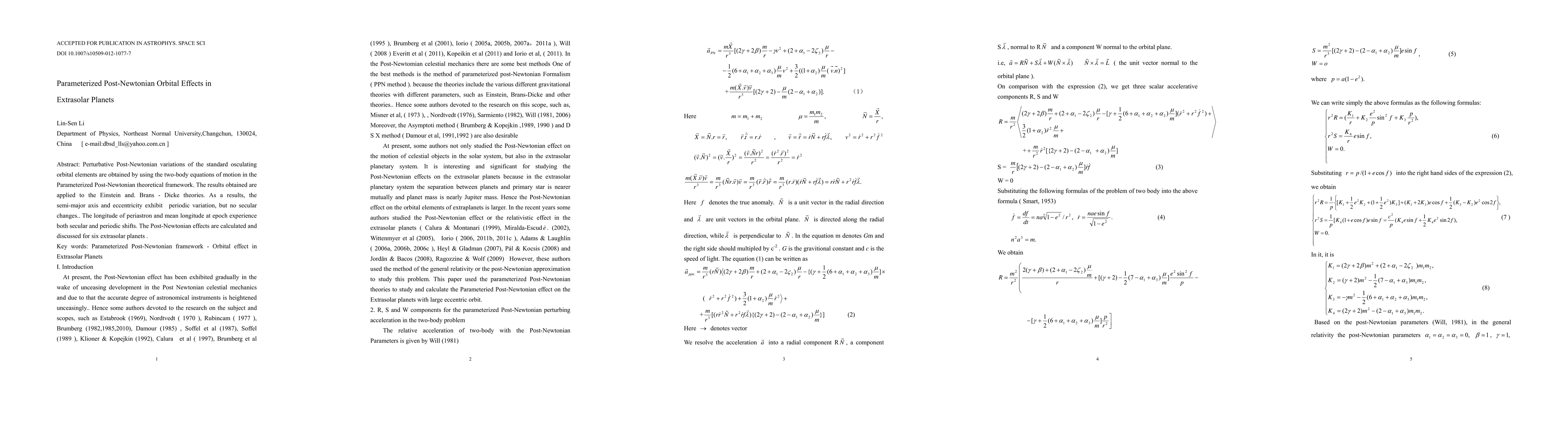 Perturbative Post-Newtonian variations of the standard osculating orbital elements are obtained by using the two-body equations of motion in the Parameterized Post-Newtonian theoretical framework. The results obtained are applied to the Einstein and. Brans - Dicke theories. As a results, the semi-major axis and eccentricity exhibit periodic variation, but no secular changes.. The longitude of periastron and mean longitude at epoch experience both secular and periodic shifts. The Post-Newtonian effects are calculated and discussed for six extrasolar planets.