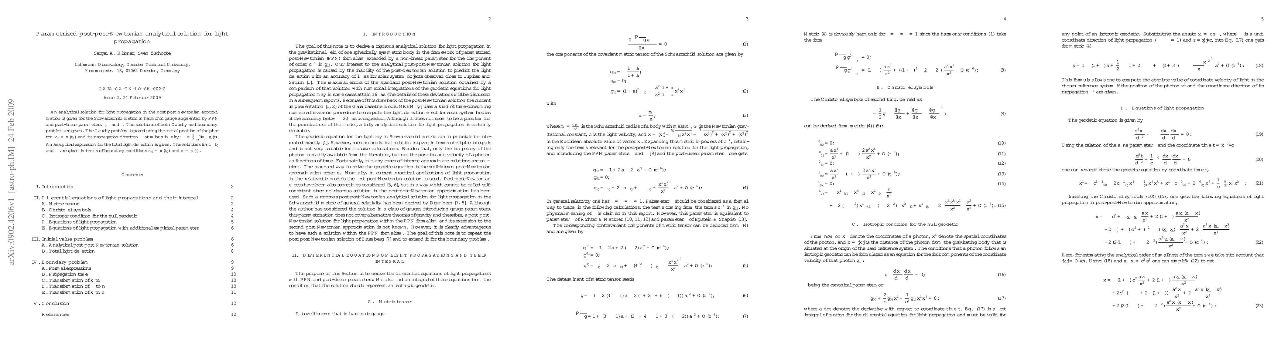 An analytical solution for light propagation in the post-post-Newtonian approximation is given for the Schwarzschild metric in harmonic gauge augmented by PPN and post-linear parameters $\beta$, $\gamma$ and $\epsilon$. The solutions of both Cauchy and boundary problem are given. The Cauchy problem is posed using the initial position of the photon $\ve{x}_0 = \ve{x}(t_0)$ and its propagation direction \ve{\sigma} at minus infinity: $\ve{\sigma} = {1\over c} \lim\limits_{t \to -\infty}\dot{\ve{x}}(t)$. An analytical expression for the total light deflection is given. The solutions for $t - t_0$ and $\ve{\sigma}$ are given in terms of boundary conditions $\ve{x}_0 = \ve{x} (t_0)$ and $\ve{x} = \ve{x}(t)$.