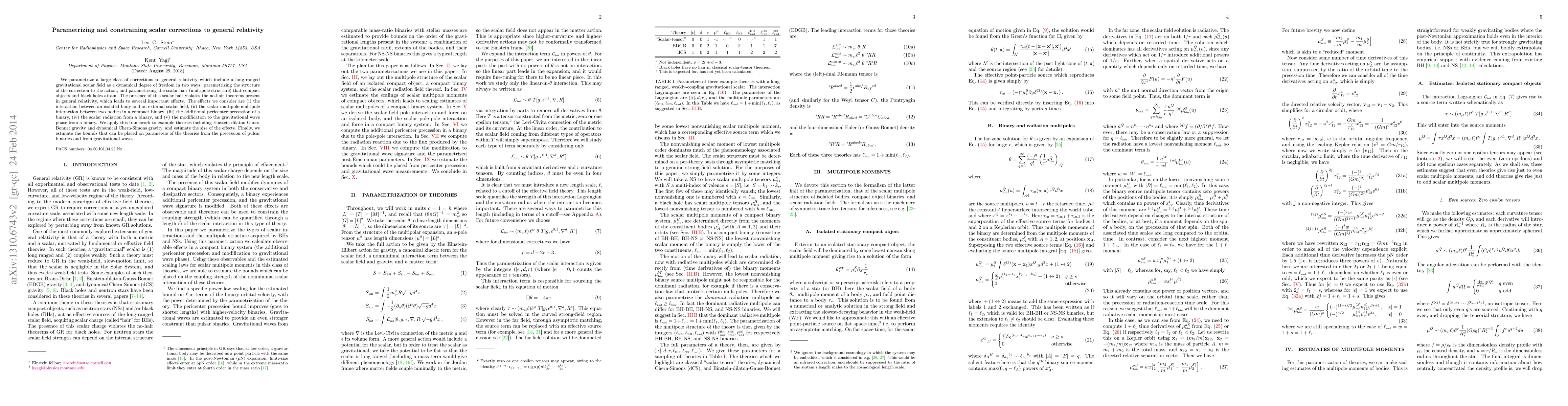Researchers develop a framework to study scalar corrections to general relativity, which include long-ranged gravitational fields, leading to predictions for effects on binary systems and pulsar precession.