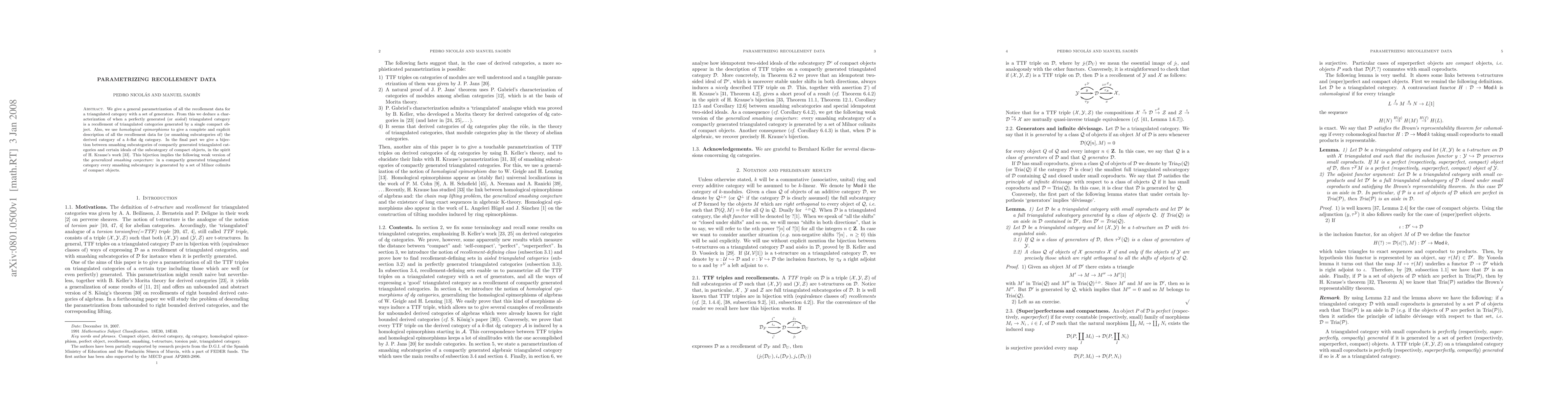This paper provides a general parametrization for recollement data in triangulated categories with generators, leading to a characterization of perfectly generated triangulated categories as single compact object recollements. It also explores homological epimorphisms in dg categories to describe recollement data in derived categories of k-flat dg categories, and establishes a bijection between smashing subcategories and certain ideals, supporting a weak version of the Generalized Smashing Conjecture.