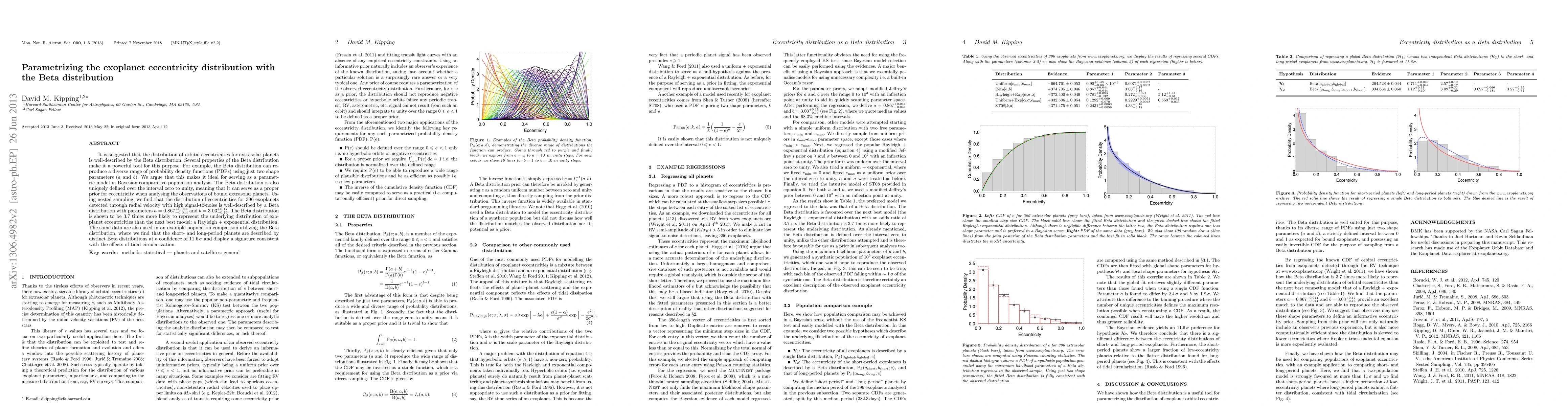 It is suggested that the distribution of orbital eccentricities for extrasolar planets is well-described by the Beta distribution. Several properties of the Beta distribution make it a powerful tool for this purpose. For example, the Beta distribution can reproduce a diverse range of probability density functions (PDFs) using just two shape parameters (a and b). We argue that this makes it ideal for serving as a parametric model in Bayesian comparative population analysis. The Beta distribution is also uniquely defined over the interval zero to unity, meaning that it can serve as a proper prior for eccentricity when analysing the observations of bound extrasolar planets. Using nested sampling, we find that the distribution of eccentricities for 396 exoplanets detected through radial velocity with high signal-to-noise is well-described by a Beta distribution with parameters a = 0.867+/-0.044 and b = 3.03+/-0.17. The Beta distribution is shown to be 3.7 times more likely to represent the underlying distribution of exoplanet eccentricities than the next best model: a Rayleigh + exponential distribution. The same data are also used in an example population comparison utilizing the Beta distribution, where we find that the short- and long-period planets are described by distinct Beta distributions at a confidence of 11.6 sigma and display a signature consistent with the effects of tidal circularization.
