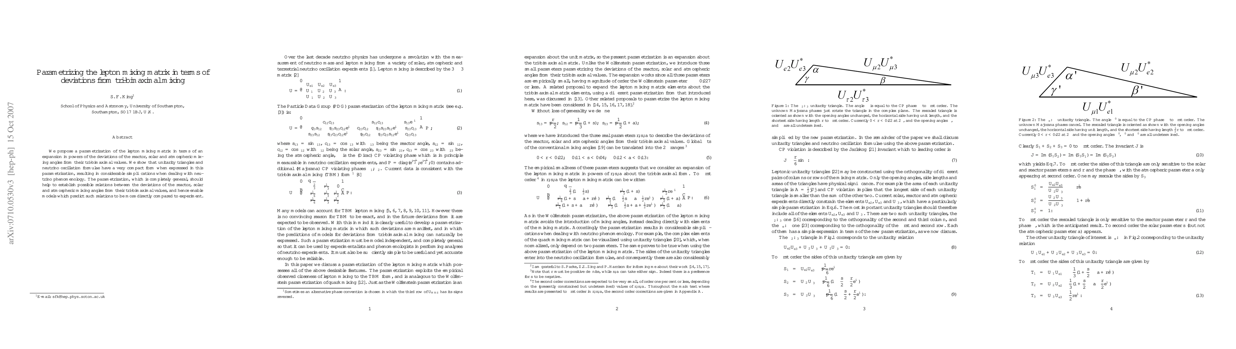 This paper proposes a new parametrization of the lepton mixing matrix based on deviations from tri-bimaximal mixing, simplifying unitarity triangles and neutrino oscillation formulae. The approach aims to facilitate comparisons between theoretical predictions and experimental data on neutrino mixing angles.