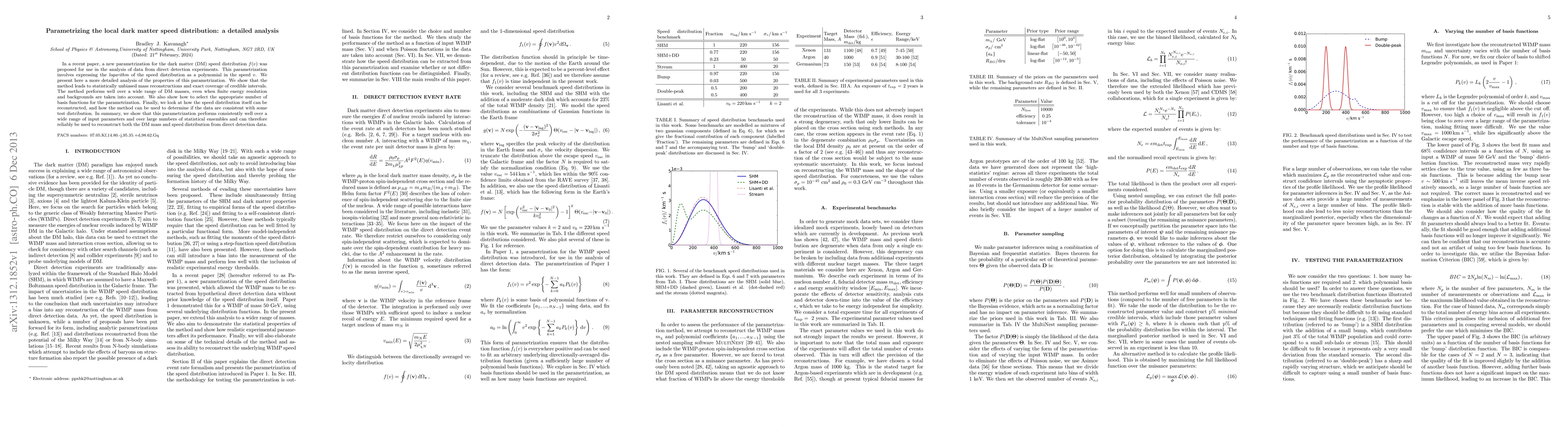 In a recent paper, a new parametrization for the dark matter (DM) speed distribution f(v) was proposed for use in the analysis of data from direct detection experiments. This parametrization involves expressing the logarithm of the speed distribution as a polynomial in the speed v. We present here a more detailed analysis of the properties of this parametrization. We show that the method leads to statistically unbiased mass reconstructions and exact coverage of credible intervals. The method performs well over a wide range of DM masses, even when finite energy resolution and backgrounds are taken into account. We also show how to select the appropriate number of basis functions for the parametrization. Finally, we look at how the speed distribution itself can be reconstructed, and how the method can be used to determine if the data are consistent with some test distribution. In summary, we show that this parametrization performs consistently well over a wide range of input parameters and over large numbers of statistical ensembles and can therefore reliably be used to reconstruct both the DM mass and speed distribution from direct detection data.