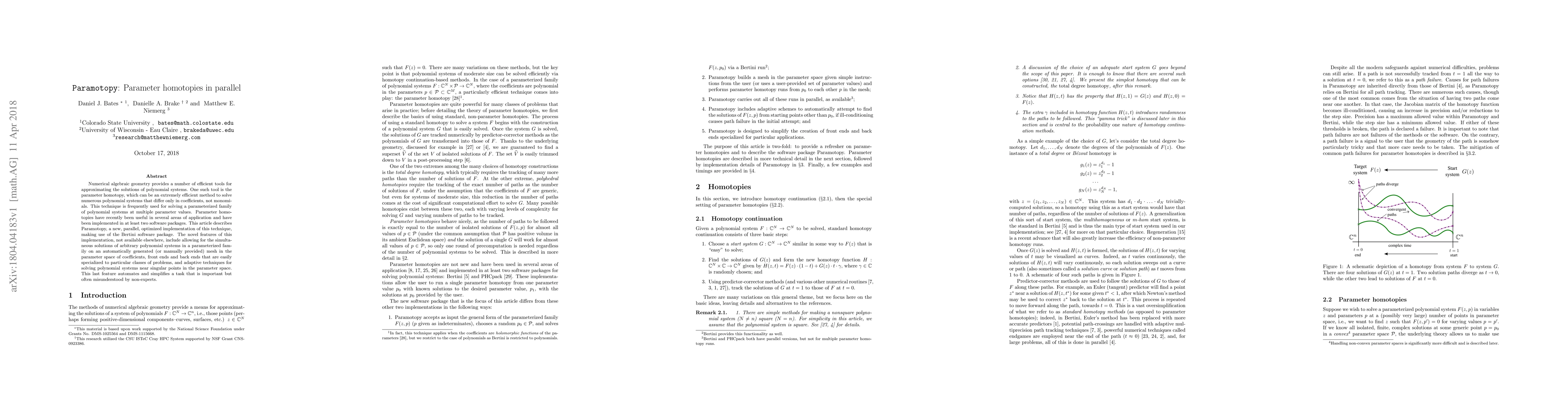 Numerical algebraic geometry provides a number of efficient tools for approximating the solutions of polynomial systems. One such tool is the parameter homotopy, which can be an extremely efficient method to solve numerous polynomial systems that differ only in coefficients, not monomials. This technique is frequently used for solving a parameterized family of polynomial systems at multiple parameter values. Parameter homotopies have recently been useful in several areas of application and have been implemented in at least two software packages. This article describes Paramotopy, a new, parallel, optimized implementation of this technique, making use of the Bertini software package. The novel features of this implementation, not available elsewhere, include allowing for the simultaneous solutions of arbitrary polynomial systems in a parameterized family on an automatically generated (or manually provided) mesh in the parameter space of coefficients, front ends and back ends that are easily specialized to particular classes of problems, and adaptive techniques for solving polynomial systems near singular points in the parameter space. This last feature automates and simplifies a task that is important but often misunderstood by non-experts.