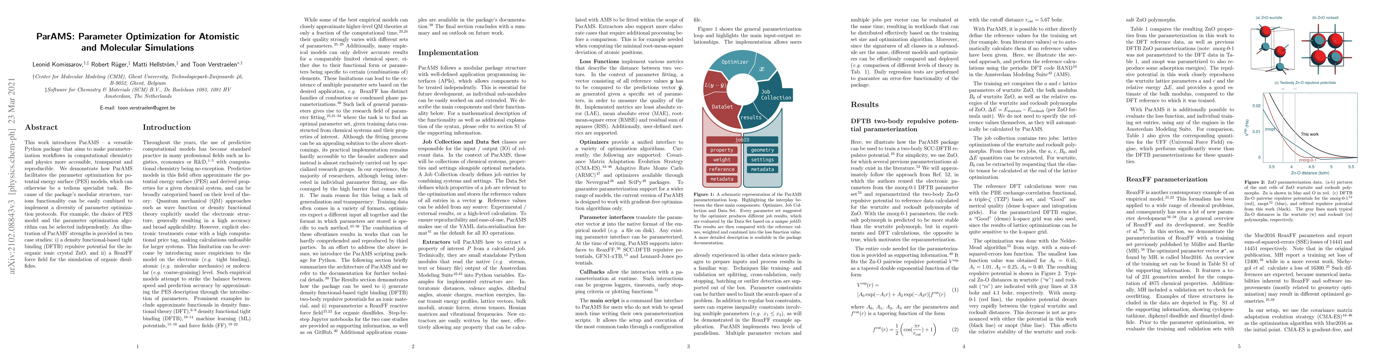 This work introduces ParAMS -- a versatile Python package that aims to make parameterization workflows in computational chemistry and physics more accessible, transparent and reproducible. We demonstrate how ParAMS facilitates the parameter optimization for potential energy surface (PES) models, which can otherwise be a tedious specialist task. Because of the package's modular structure, various functionality can be easily combined to implement a diversity of parameter optimization protocols. For example, the choice of PES model and the parameter optimization algorithm can be selected independently. An illustration of ParAMS' strengths is provided in two case studies: i) a density functional-based tight binding (DFTB) repulsive potential for the inorganic ionic crystal ZnO, and ii) a ReaxFF force field for the simulation of organic disulfides.