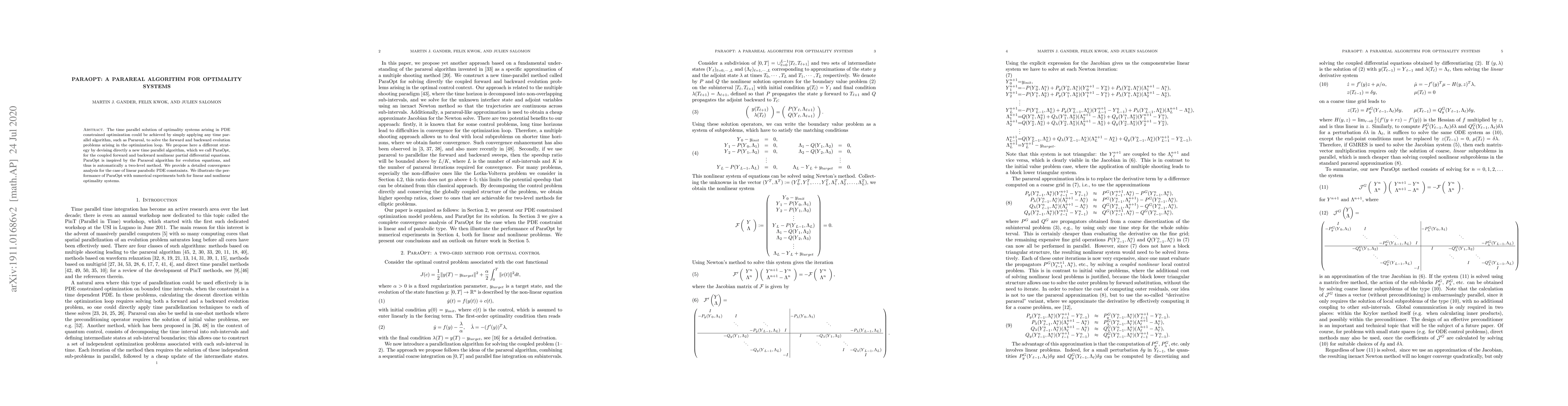 The paper introduces ParaOpt, a novel time parallel algorithm for solving optimality systems in PDE constraint optimization, offering a new approach compared to existing methods like Parareal. The authors provide a convergence analysis for linear parabolic PDE constraints and demonstrate ParaOpt's effectiveness through numerical experiments on both linear and nonlinear systems.