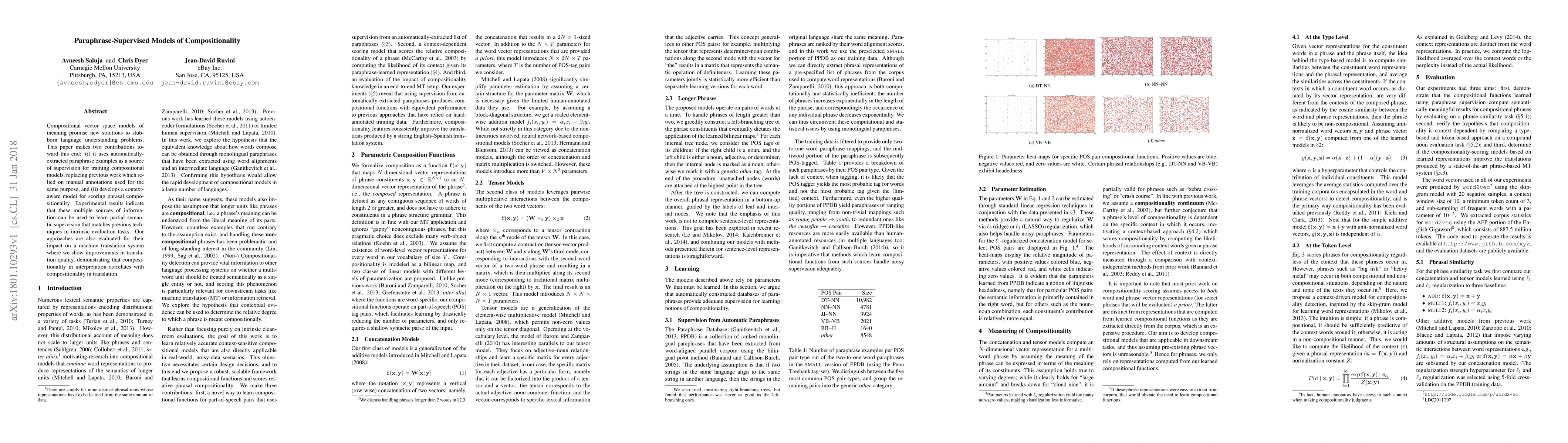 Compositional vector space models of meaning promise new solutions to stubborn language understanding problems. This paper makes two contributions toward this end: (i) it uses automatically-extracted paraphrase examples as a source of supervision for training compositional models, replacing previous work which relied on manual annotations used for the same purpose, and (ii) develops a context-aware model for scoring phrasal compositionality. Experimental results indicate that these multiple sources of information can be used to learn partial semantic supervision that matches previous techniques in intrinsic evaluation tasks. Our approaches are also evaluated for their impact on a machine translation system where we show improvements in translation quality, demonstrating that compositionality in interpretation correlates with compositionality in translation.