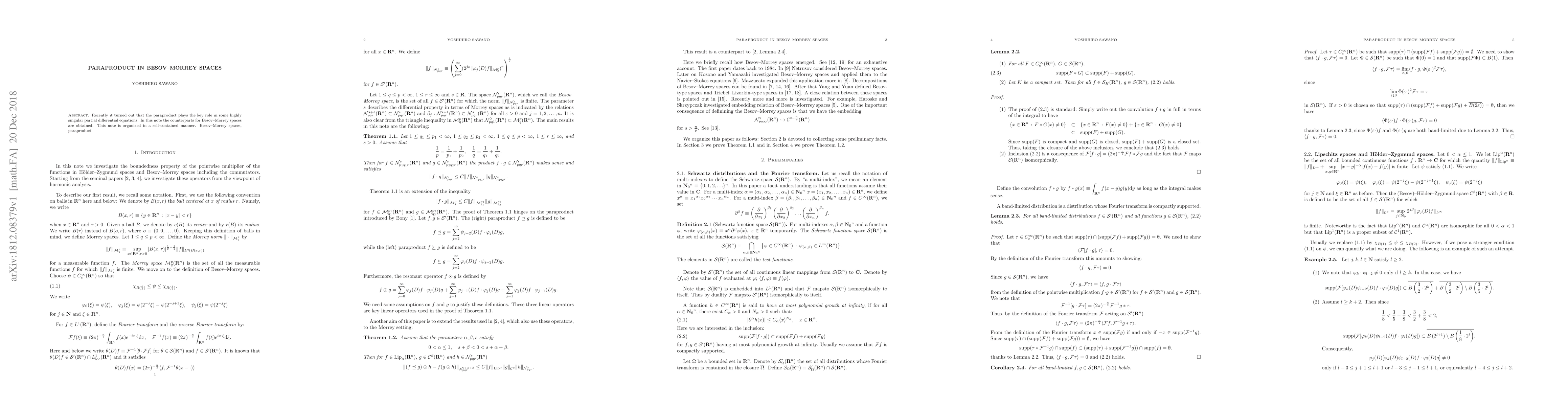 This paper introduces counterparts for the paraproduct in Besov--Morrey spaces, a development that has implications for solving highly singular partial differential equations. The findings provide new insights into the role of the paraproduct in these types of equations.