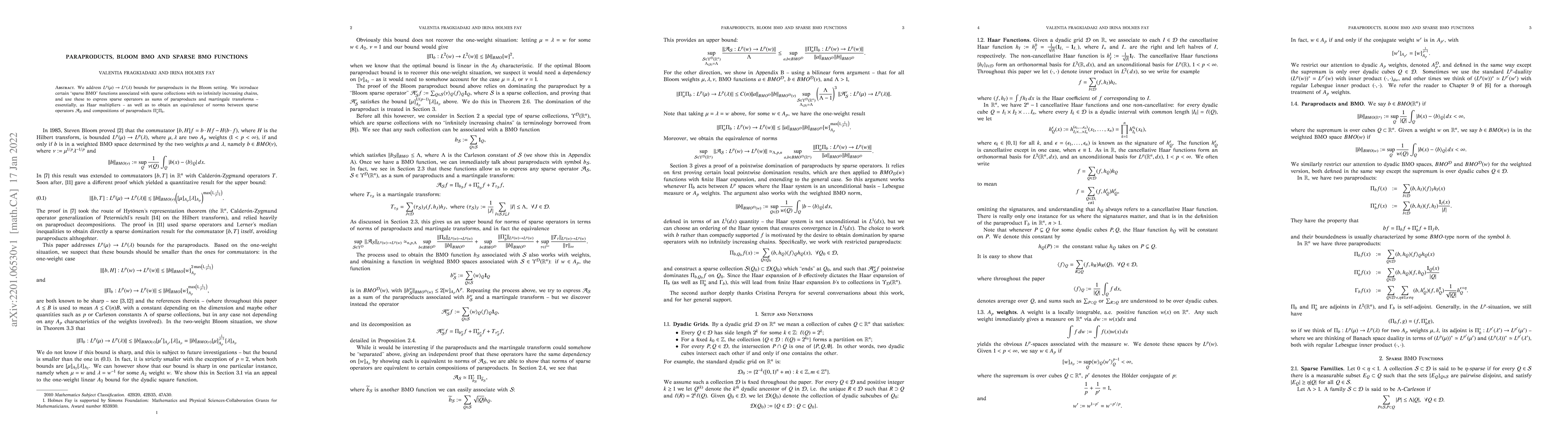 This paper establishes $L^p(\mu)\rightarrow L^p(\lambda)$ bounds for paraproducts within the Bloom function space framework, introducing "sparse BMO" functions to represent sparse operators as sums of paraproducts and martingale transforms, and proving an equivalence of norms between sparse operators and compositions of paraproducts.