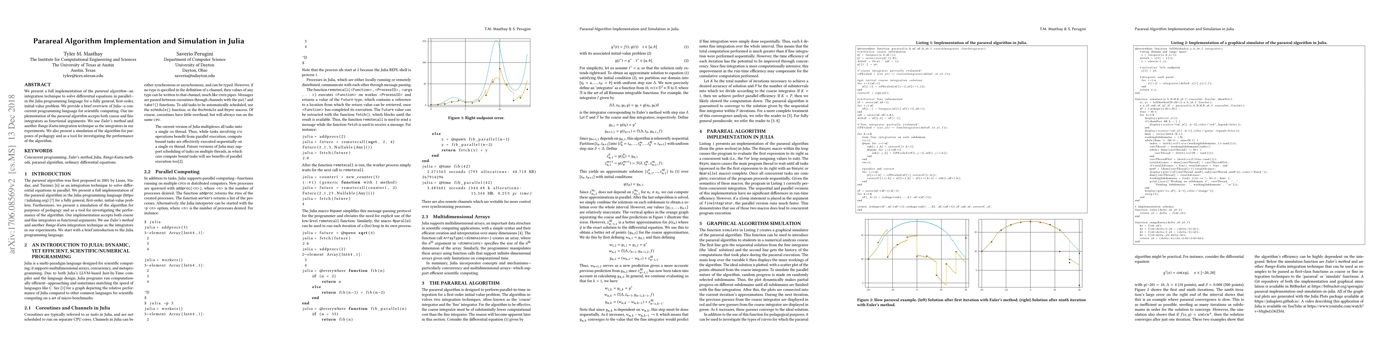 This paper details a Julia implementation of the parareal algorithm for solving differential equations in parallel, showcasing its flexibility with both Euler's method and Runge-Kutta integration techniques. The implementation is demonstrated through simulations to evaluate its performance and pedagogical effectiveness.