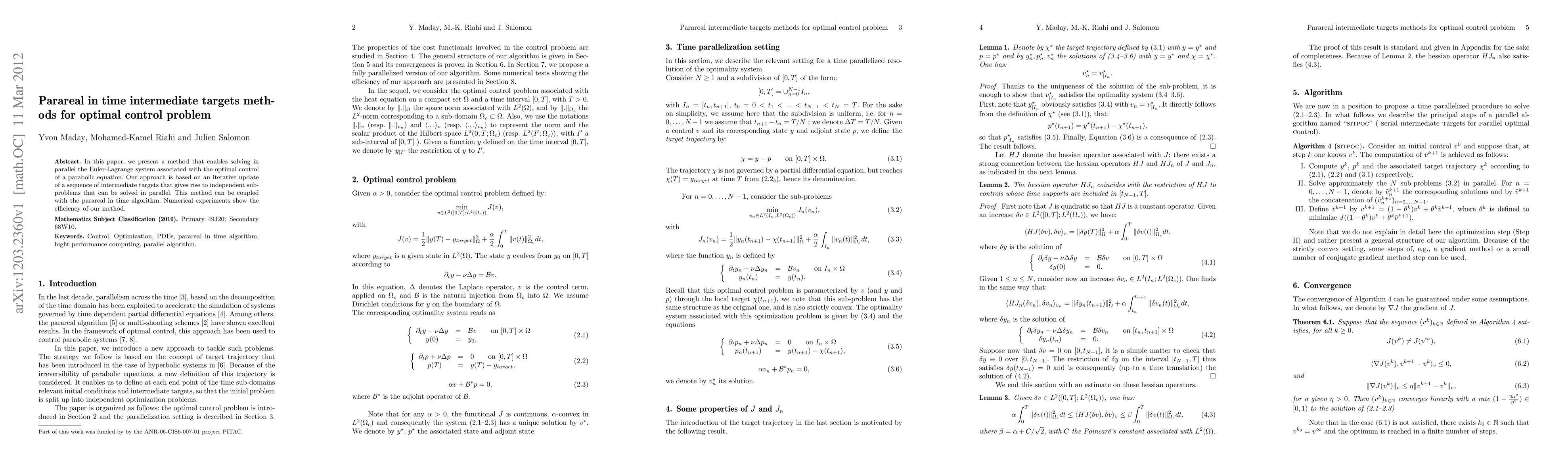 In this paper, we present a method that enables solving in parallel the Euler-Lagrange system associated with the optimal control of a parabolic equation. Our approach is based on an iterative update of a sequence of intermediate targets that gives rise to independent sub-problems that can be solved in parallel. This method can be coupled with the parareal in time algorithm. Numerical experiments show the efficiency of our method.