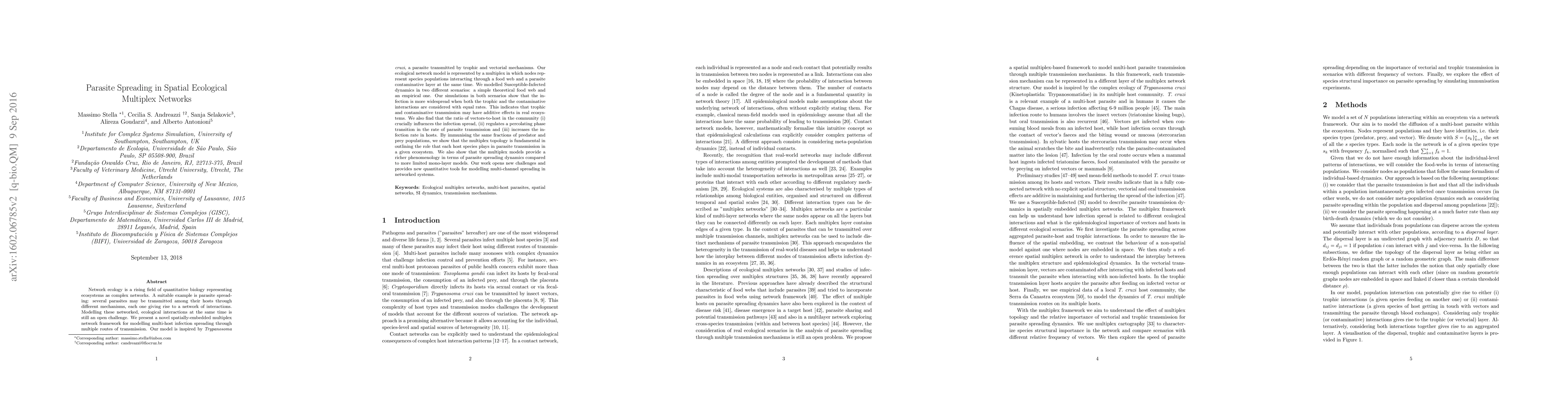A comprehensive multiplex network model was developed to investigate the spreading of multi-host parasites across different transmission mechanisms.