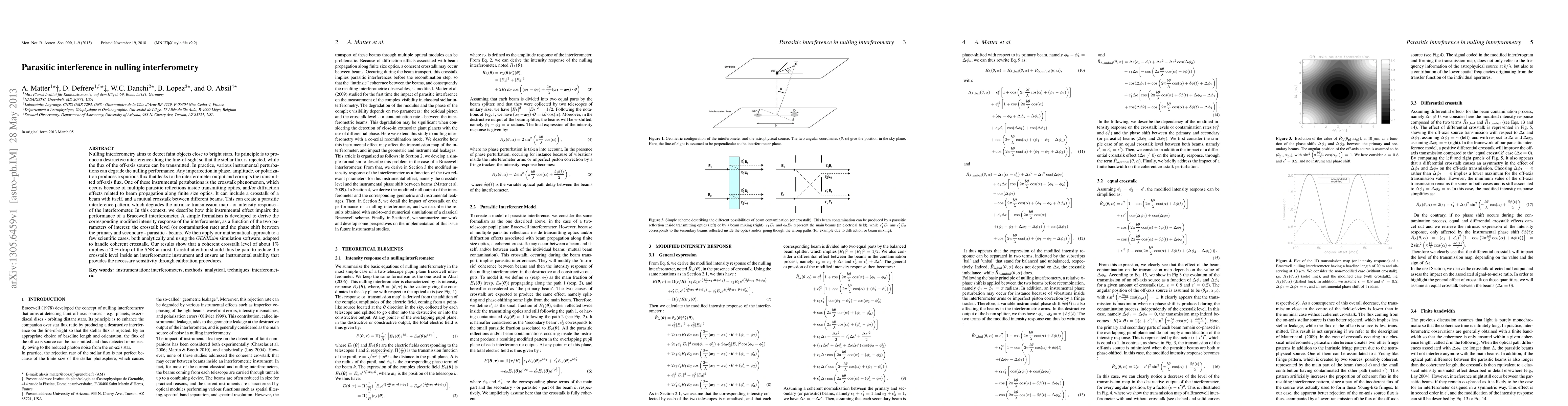 This paper investigates how parasitic reflections and diffraction effects, known as crosstalk, degrade the performance of nulling interferometry used to detect faint objects near bright stars. It develops a formalism to quantify the impact of crosstalk on the interferometer's intensity response, showing that a 1% crosstalk level can reduce the signal-to-noise ratio by 20%, emphasizing the need for instrumental stability and calibration to maintain sensitivity.
