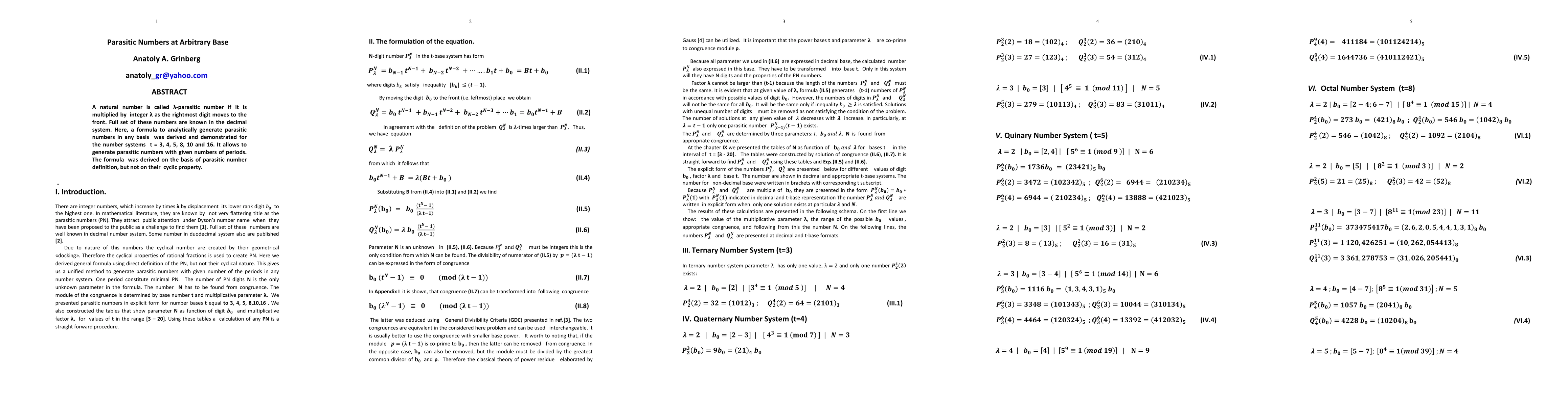 A natural number is called an {\lambda}-parasitic number if it is multiplied by integer {\lambda} as the rightmost digit moves to the front. The Full set of these numbers is known in the decimal system. Here, a formula to analytically generate parasitic numbers in any base was derived and demonstrated for the number systems in base t = 3, 4, 5, 8, 10 and 16. It allows to generate parasitic numbers with given numbers of periods. The formula was derived using the definition of parasitic numbers , not their cyclical property.